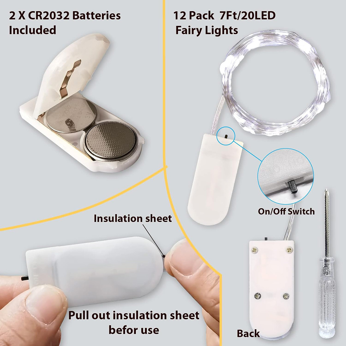 12 Pack LED White Fairy Lights Battery Operated 7ft 20LED Mini Fairy String Lights Mason Jar Lights