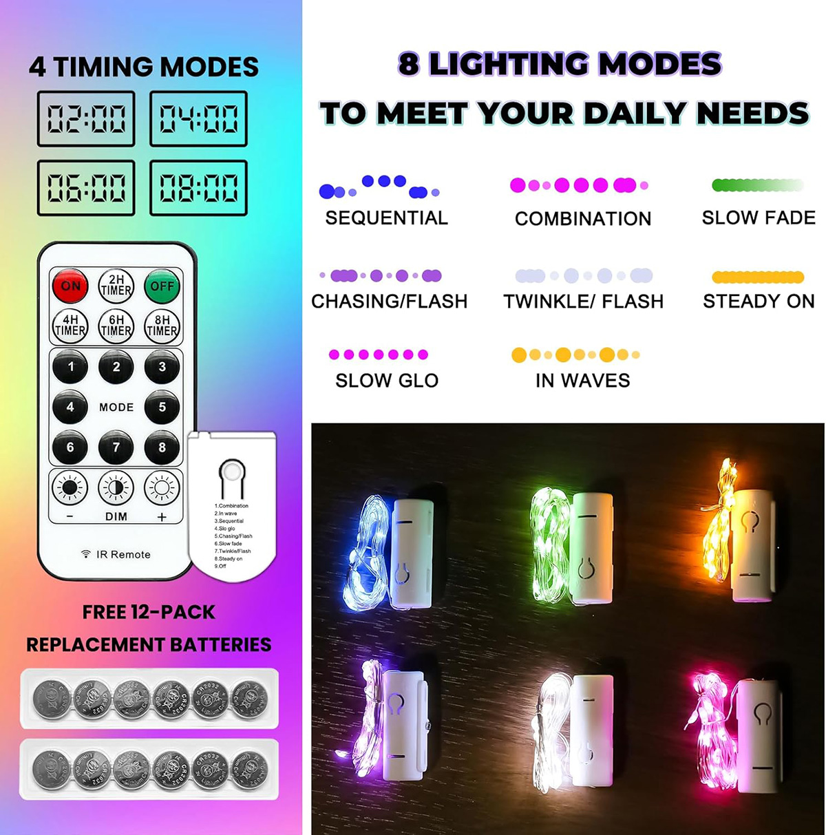 6 Pack Multicolor Fairy Lights Battery Operated with Remote & Timer 7ft 20LED Mini String Lights Mason Jar Lights