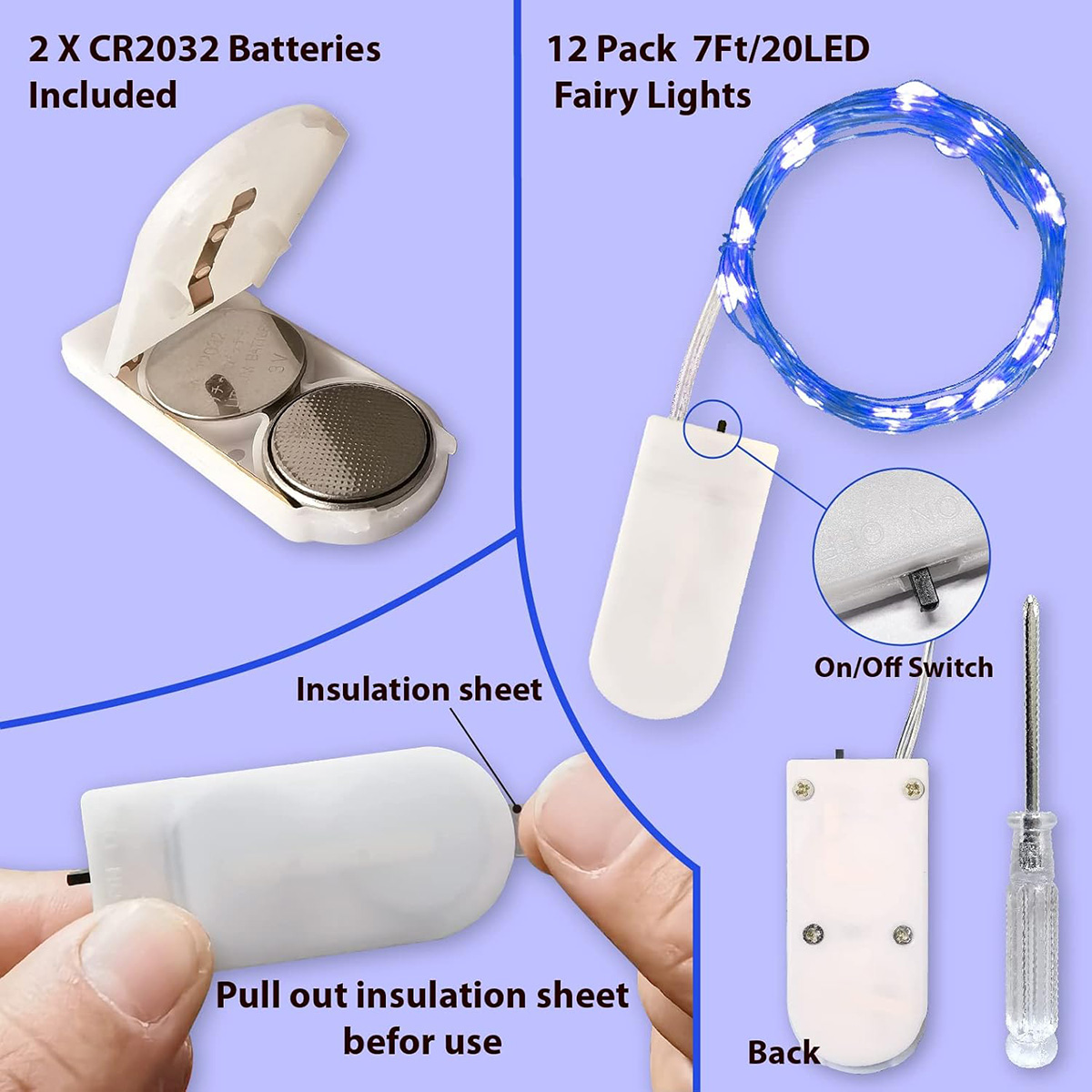 12 Pack 7ft 20LED Blue Fairy Lights Battery Operated