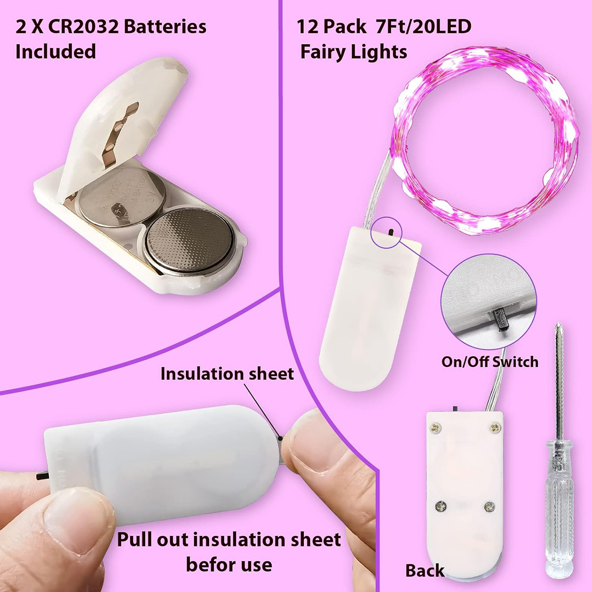 12 Pack 7ft 20LED Pink Fairy Lights Battery Operated