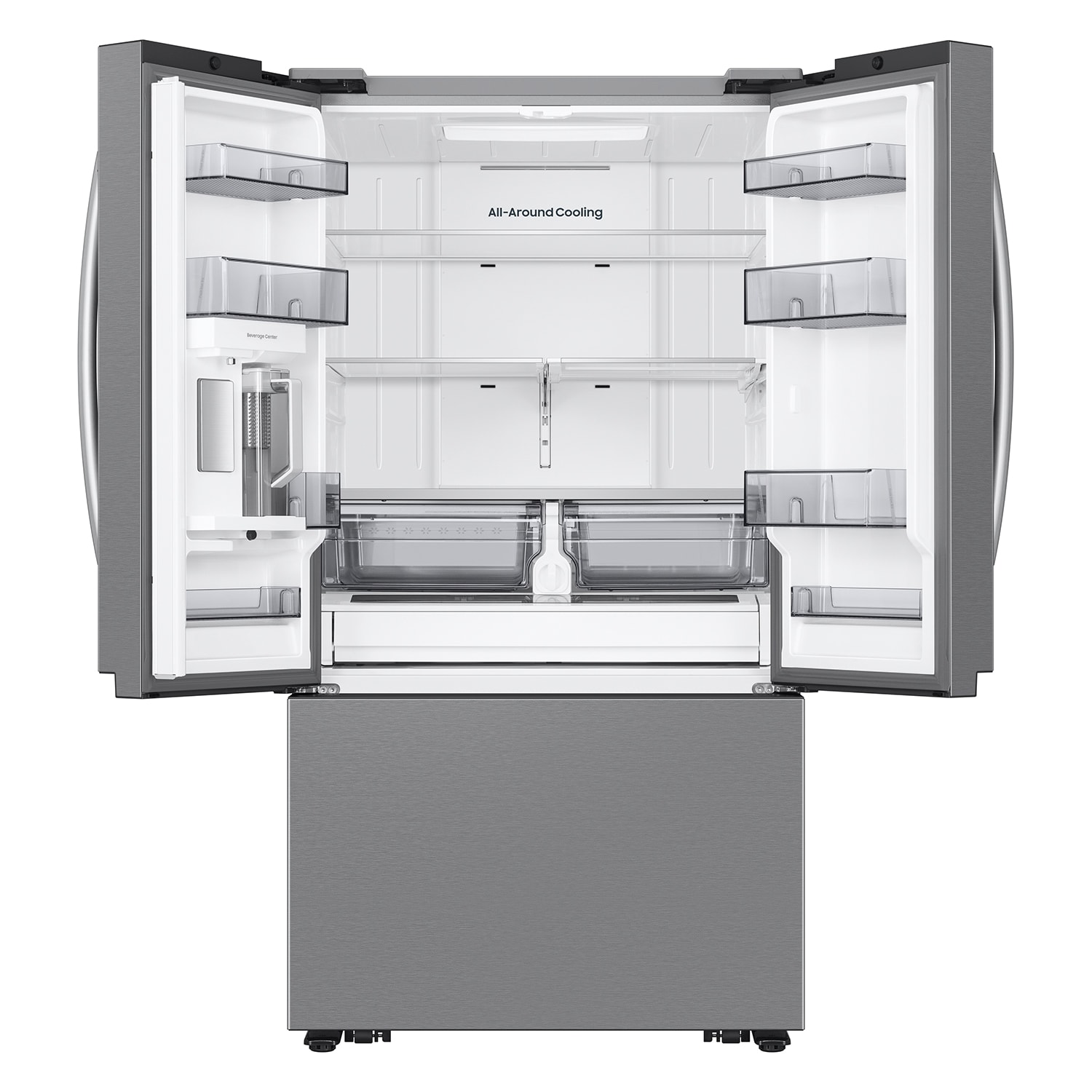 We carry French door refrigerators with a variety of options, including internal and external water dispensers and smart technology.