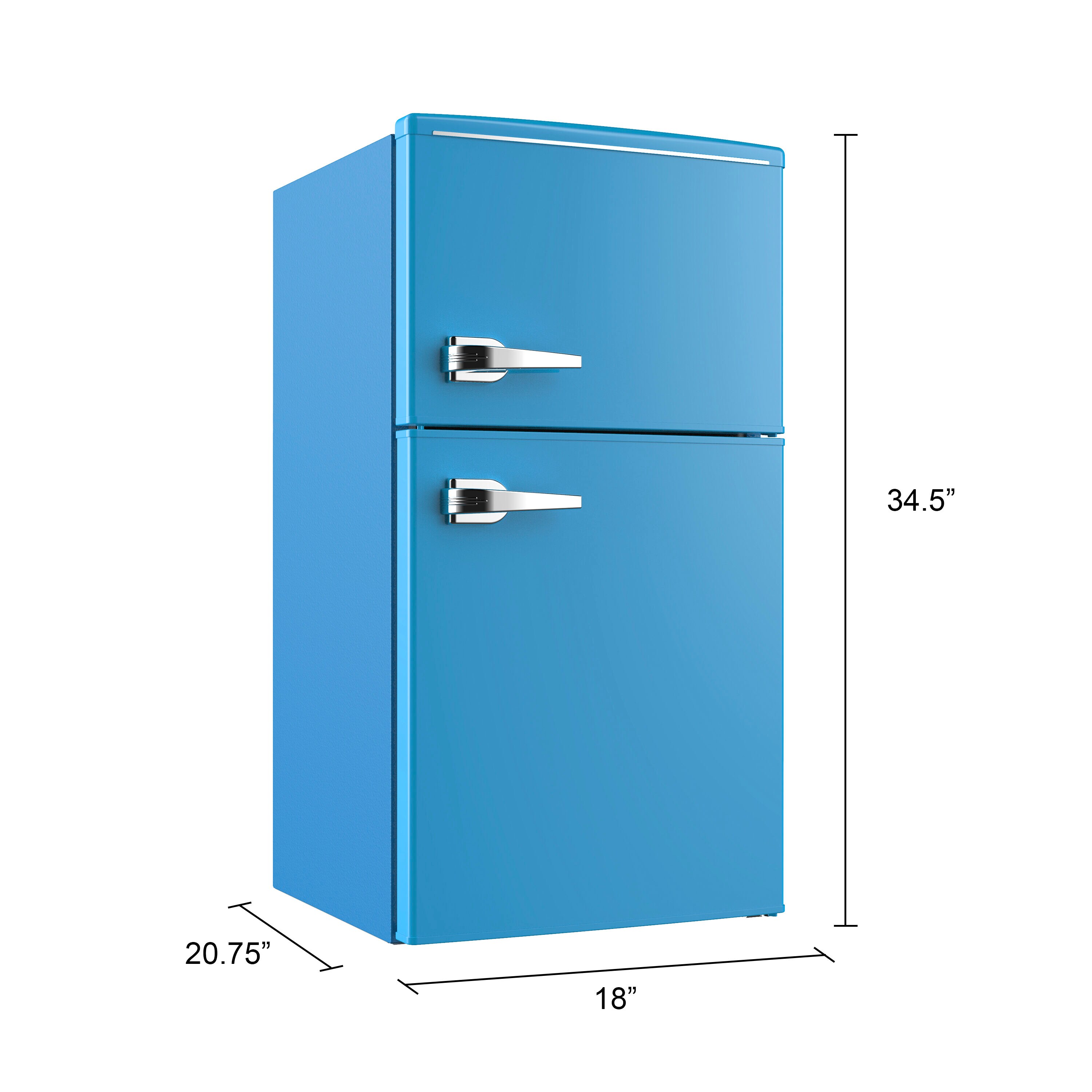 This retro-inspired compact refrigerator combines vintage charm with modern functionality, delivering a cool, colorful, and sophisticated aesthetic that enhances any setting. With a capacity of 3.0 cubic feet, this double-door freezer/refrigerator is the perfect space-saving solution for your home, dorm room, office, or recreational area. Its thoughtful design ensures that your favorite foods and beverages are always within reach, making it an ideal addition to small spaces where style and practicality matter most. The double-door design offers convenient access to all your essentials. The top freezer section provides ample space for storing frozen foods in bulk, helping you save money by reducing trips to the store. Meanwhile, the refrigerator section is designed to keep salads, fruits, snacks, and beverages fresh and easily accessible throughout the day. The manual defrost system allows you to maintain optimal cooling performance with minimal effort, giving you full control over the unit’s temperature settings. Storage is made simple with built-in door shelves and a beverage can dispenser. The door design accommodates a variety of items, including two-liter bottles, assorted condiments, and up to six 12-ounce cans, ensuring that your fridge stays organized and functional. Inside, two adjustable and removable glass shelves provide versatility in food storage, allowing you to customize the layout to suit your needs. These glass shelves are easy to clean and provide a clear view of your food items for added convenience. The fridge is equipped with mechanical temperature controls, allowing you to adjust the cooling settings quickly and easily with the turn of a dial. This feature ensures that your food and beverages are stored at the perfect temperature for maximum freshness. The retro-inspired exterior design adds a chic and timeless touch, making this compact fridge not only a practical appliance but also a stylish focal point in any room. Backed by Avanti’s 1-year manufacturer-limited warranty, this refrigerator offers reliability and peace of mind. Whether you’re looking to enhance your kitchen, upgrade your dorm, or add convenience to your office space, this compact fridge delivers on all fronts. Its combination of retro style, modern features, and compact efficiency makes it a standout choice for those who value both form and function.