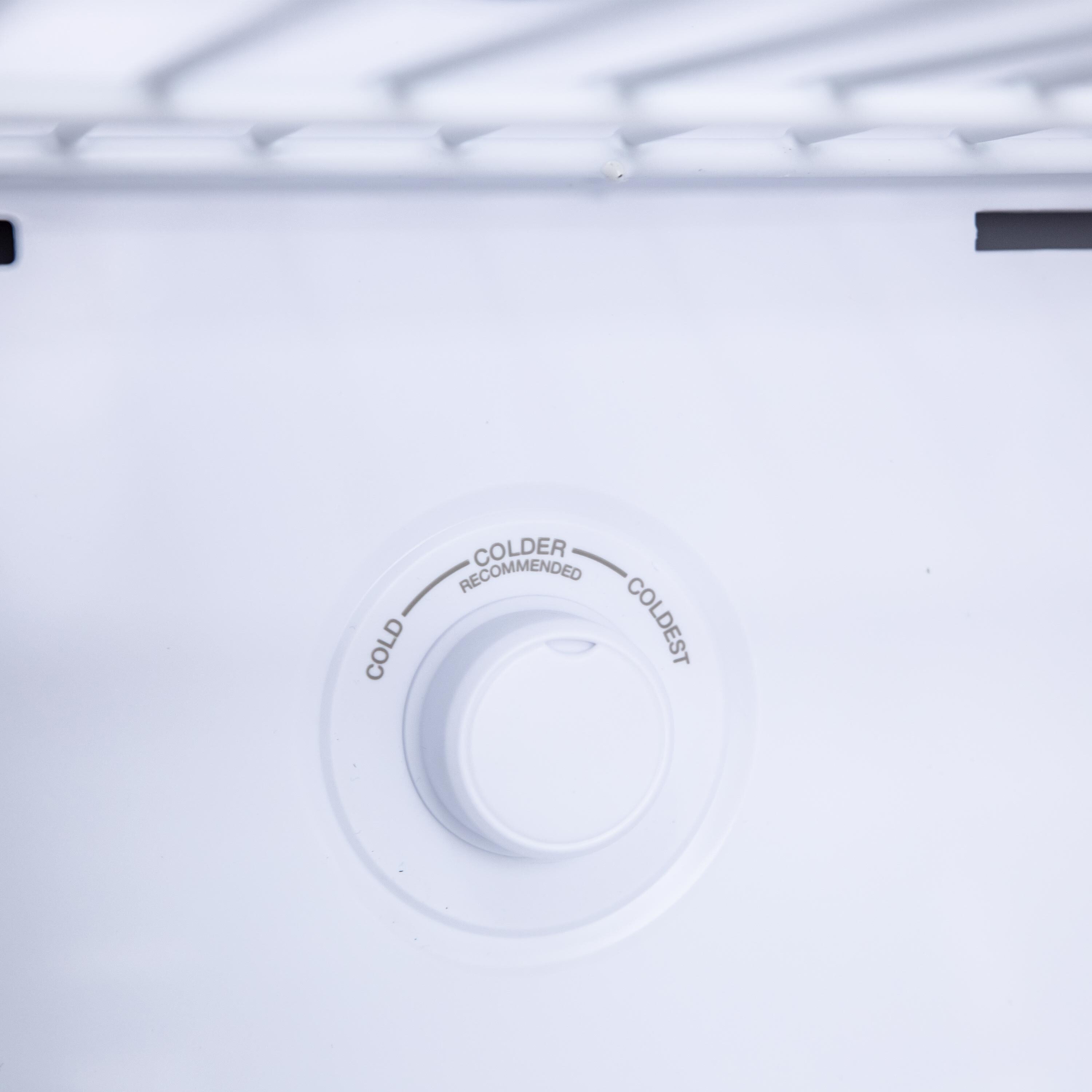 Store your food in the compact, 7.0 cubic foot, white apartment-sized refrigerator with a top mounted freezer from Avanti. The perfect space saving fridge for a studio apartment, game room, tiny home, rental room, condo, vacation home, or anywhere you need a small refrigerator. This apartment sized fridge features full width door bins that hold 2 liter and gallon bottles, adjustable and removable shelving, and a see through crisper. Select the right settings for your items with the adjustable temperature control.