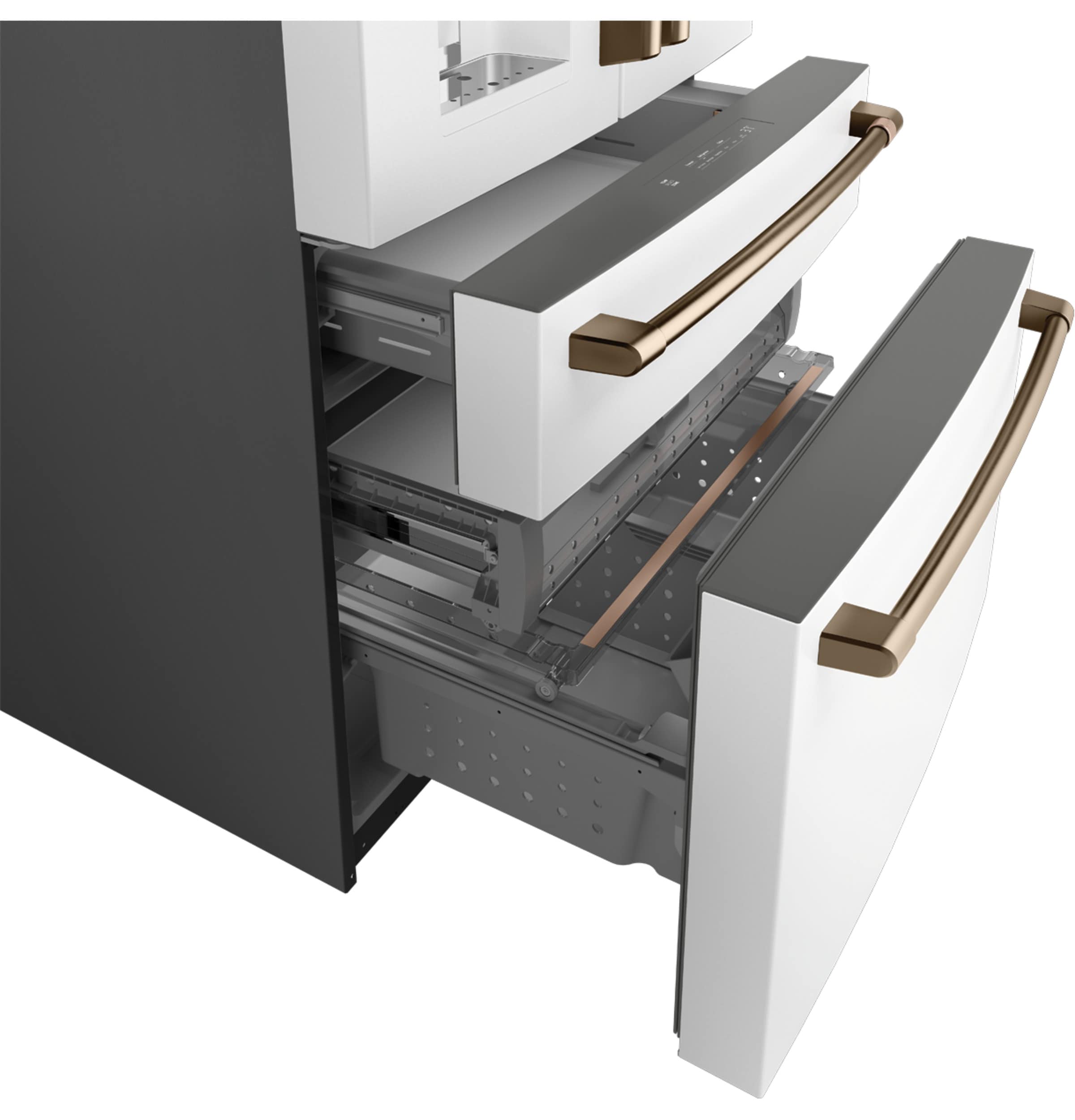 Flatbread Freezer Compartment – use the slim, full-width freezer compartment for flatbread, pizzas and other uniquely shaped frozen items, which is part of a three-level, freezer storage system of sliding shelves and trays
