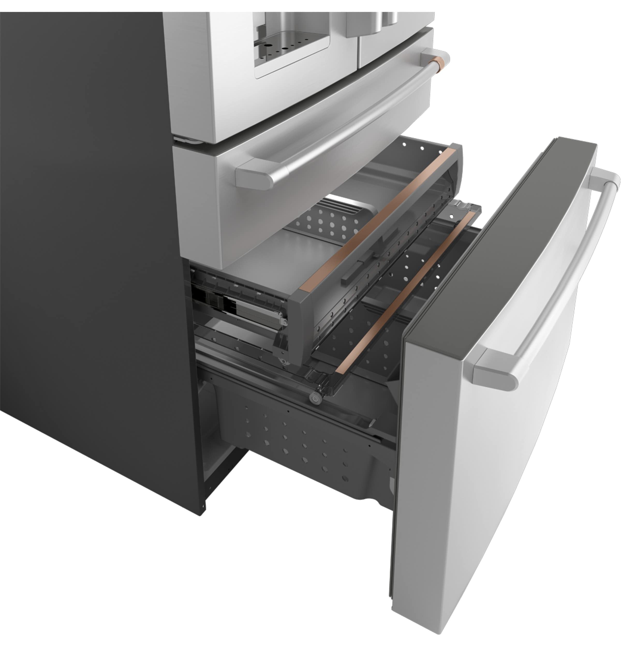 Flatbread Freezer Compartment – use the slim, full-width freezer compartment for flatbread, pizzas and other uniquely shaped frozen items, which is part of a three-level, freezer storage system of sliding shelves and trays