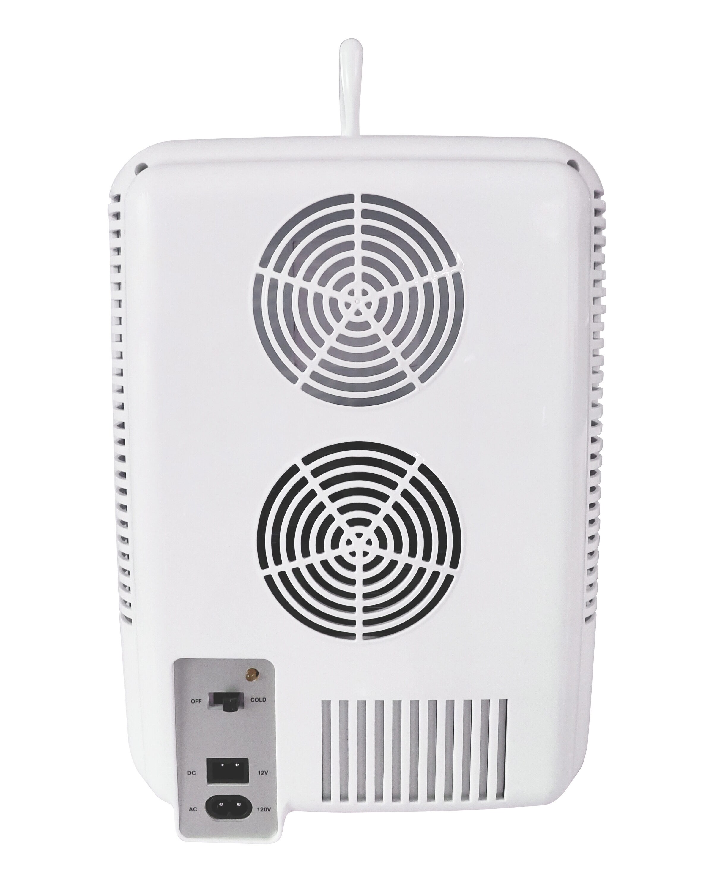 Stores up to 15 cans, powered by 110V AC wall outlet, cools up to 20 degrees F below ambient room temperature and also plugs into a 12V car adapter or home outlet.