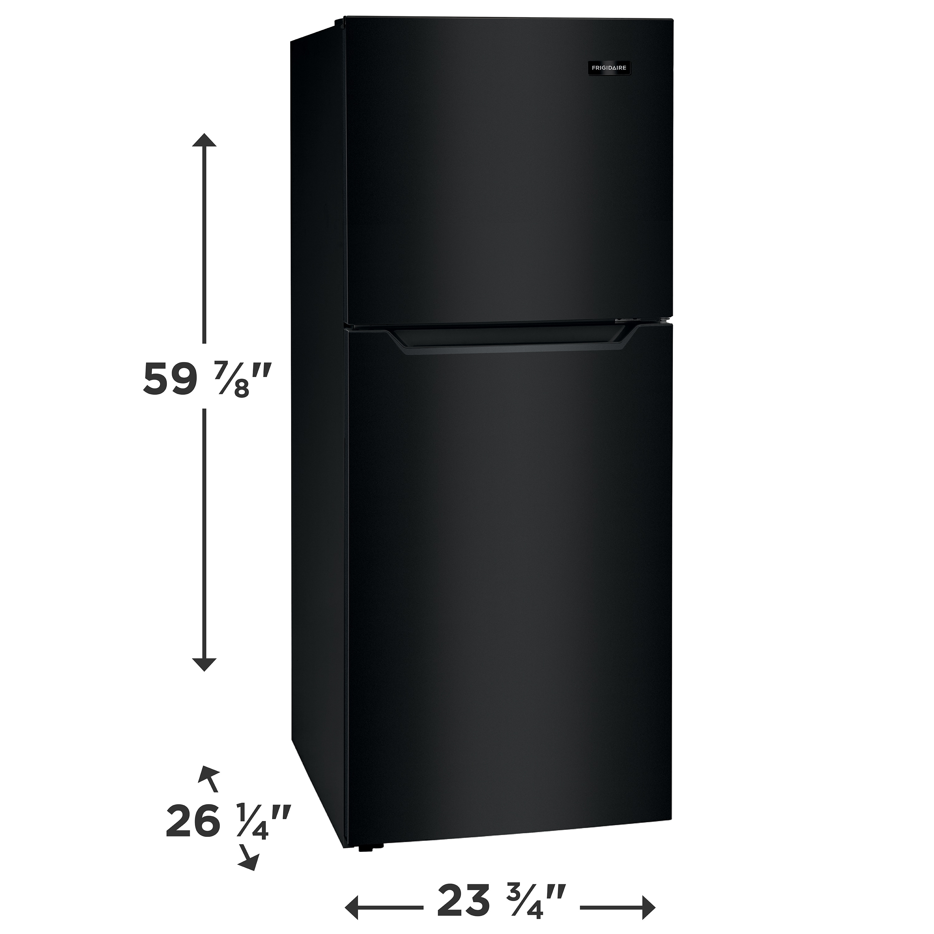 The Frigidaire 10.1 cu. Ft. apartment-size top freezer refrigerator has adjustable shelving and humidity control crisper drawers for storing fruits and vegetables. It is also equipped with bright lighting to keep contents clearly visible. E-star certification saves on energy costs and reversible doors and rear rollers accommodate your installation needs.