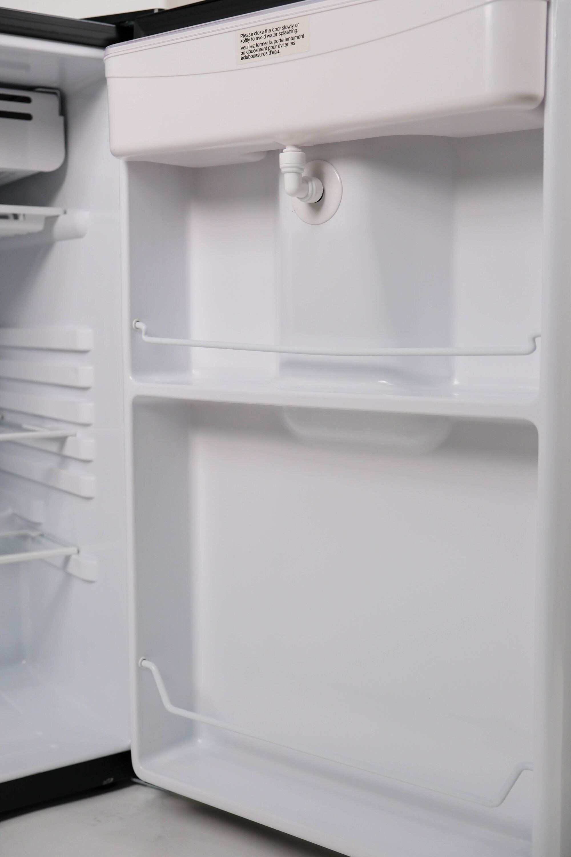 The Frigidaire 4.5 cu ft compact refrigerator with in-door water dispenser is a cool and fun way to keep your favorite beverages and snacks cold. Many additional great features include adjustable shelves, easy to reach interior controls, door storage, an interior freezer compartment, and more. The retro design will look great with any decor whether contemporary or traditional. It is perfect for a dorm room, office or RV!