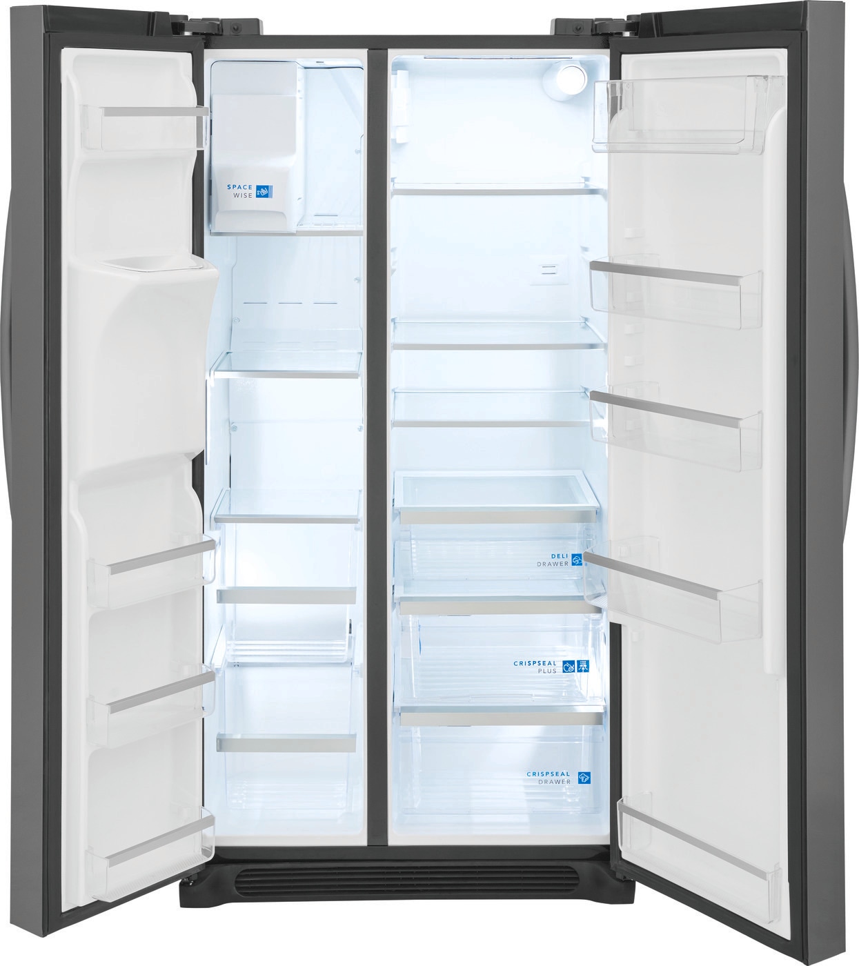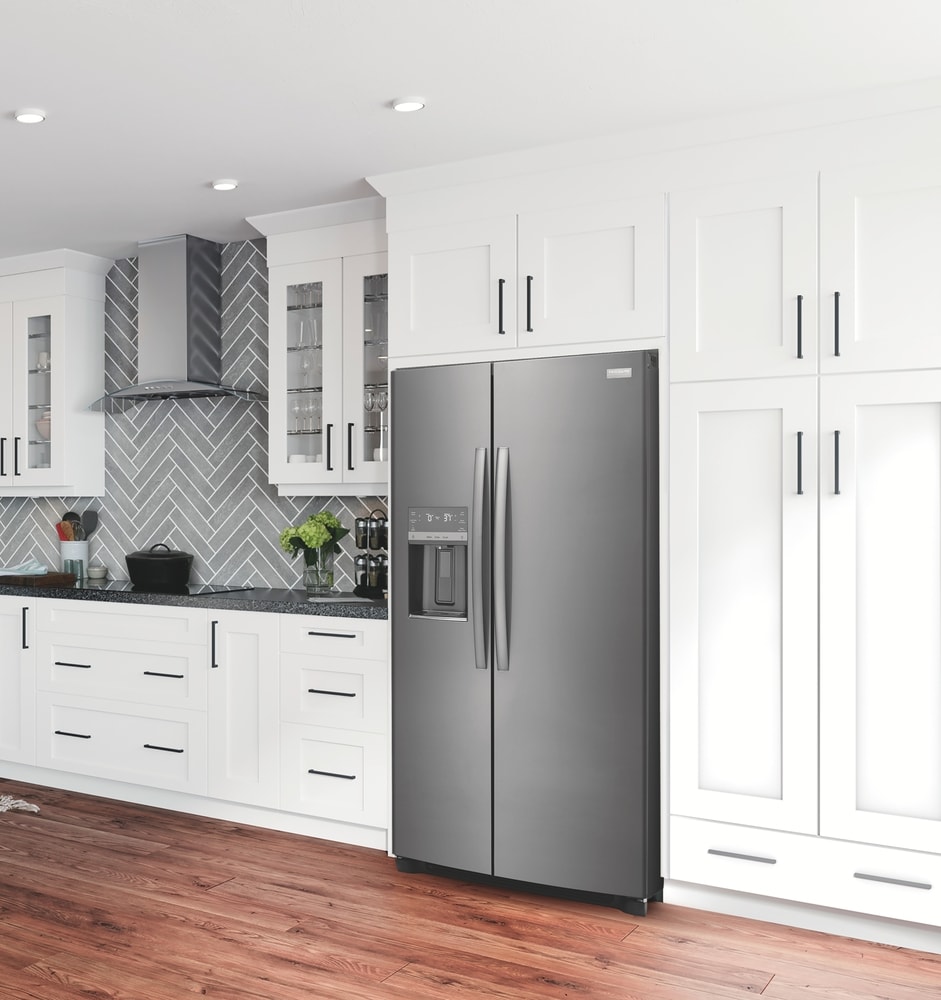 This 22.3 cu ft Frigidaire Gallery side by side refrigerator helps prevent produce from spoiling with our advanced CrispSeal Plus Crisper technology that keeps produce fresh, plus an added filter reduces the gas that causes produce to ripen faster. Keep your food fresh and reduce freezer burn with our variable speed compressor (EvenTemp Cooling System) that reacts quickly to temperature fluctuations and constantly circulates cold air throughout the fresh food and freezer compartments. Find a place for everything with our flexible organization system, including three removable, dishwasher-safe glass shelves, adjustable gallon door bin, and a slim design ice maker that holds 9 pounds of ice without taking up valuable shelf space.