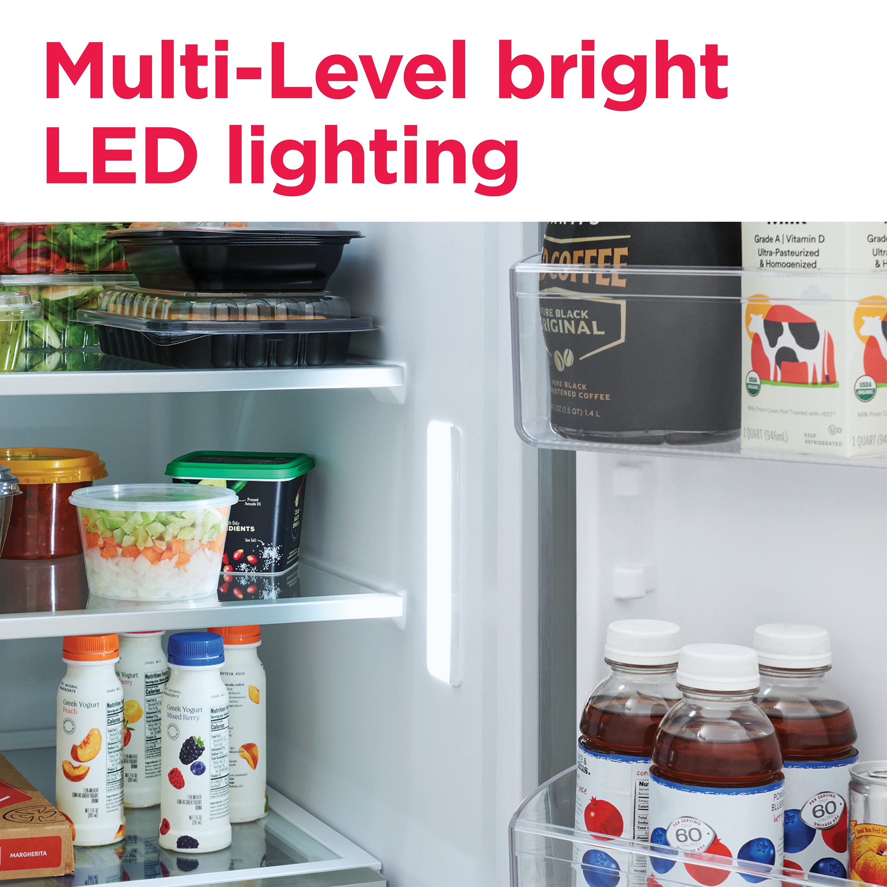 This 22.3 cu ft Frigidaire Gallery side by side refrigerator helps prevent produce from spoiling with our advanced CrispSeal Plus Crisper technology that keeps produce fresh, plus an added filter reduces the gas that causes produce to ripen faster. Keep your food fresh and reduce freezer burn with our variable speed compressor (EvenTemp Cooling System) that reacts quickly to temperature fluctuations and constantly circulates cold air throughout the fresh food and freezer compartments. Find a place for everything with our flexible organization system, including three removable, dishwasher-safe glass shelves, adjustable gallon door bin, and a slim design ice maker that holds 9 pounds of ice without taking up valuable shelf space.