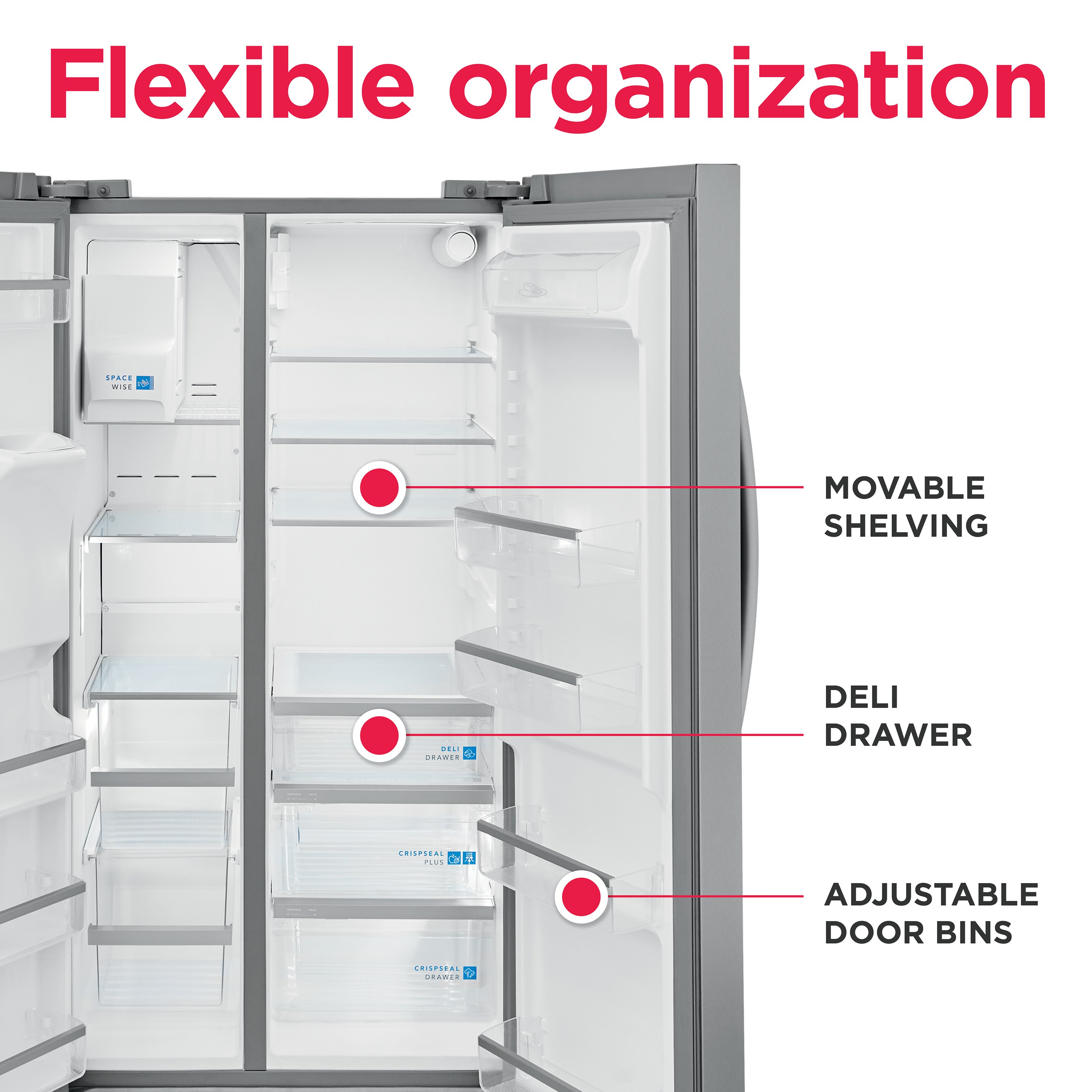 This Frigidaire Gallery 36-in side-by-side refrigerator offers our advanced CrispSeal plus crisper. This crisper keeps produce fresh with a seal that blocks out dry air, plus an added filter reduces the gas that causes produce to ripen faster. It also features our EvenTemp Cooling System which keeps your food fresh by reacting quickly to temperature fluctuations and constantly circulates cold air throughout the fresh food and freezer compartments, ensuring a consistent cool from top to bottom.