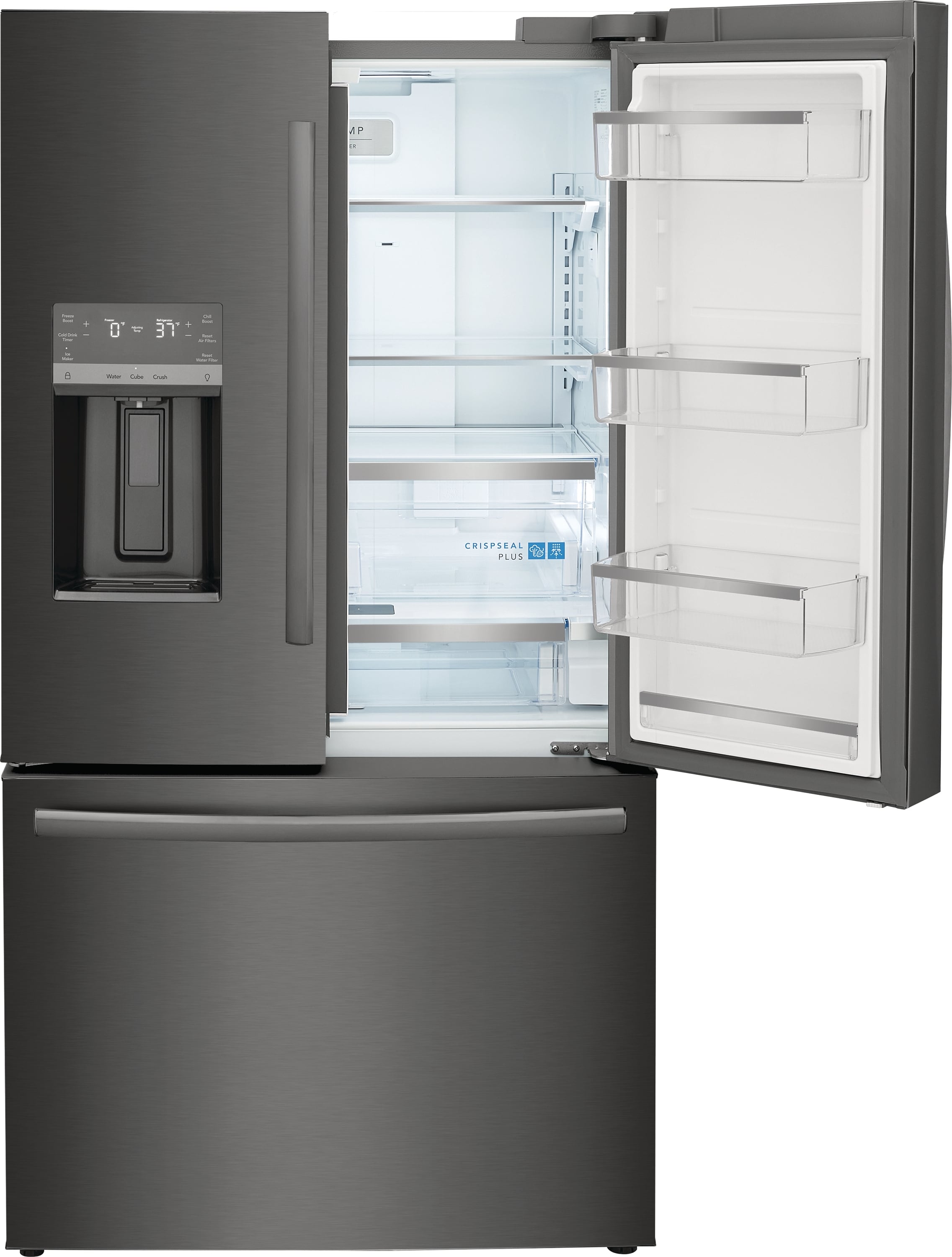This Frigidaire Gallery French door refrigerator offers a freshness system that maintains the taste and texture of even your most delicate foods. Help prevent produce from spoiling: advanced CrispSeal® Plus Crispers with auto humidity technology automatically removes excess moisture plus an added ethylene filter reduces the gas emitted by many fruits and vegetables that causes spoiling. Get more storage out of your refrigerator with clever organization solutions that maximize usable space, including in-door condiment storage, slide under shelf and accessory railing system. Keep your food fresh in our adjustable temperature drawer, with three temperature setting perfect for everything from yogurt and party platters to meat and chilled drinks.