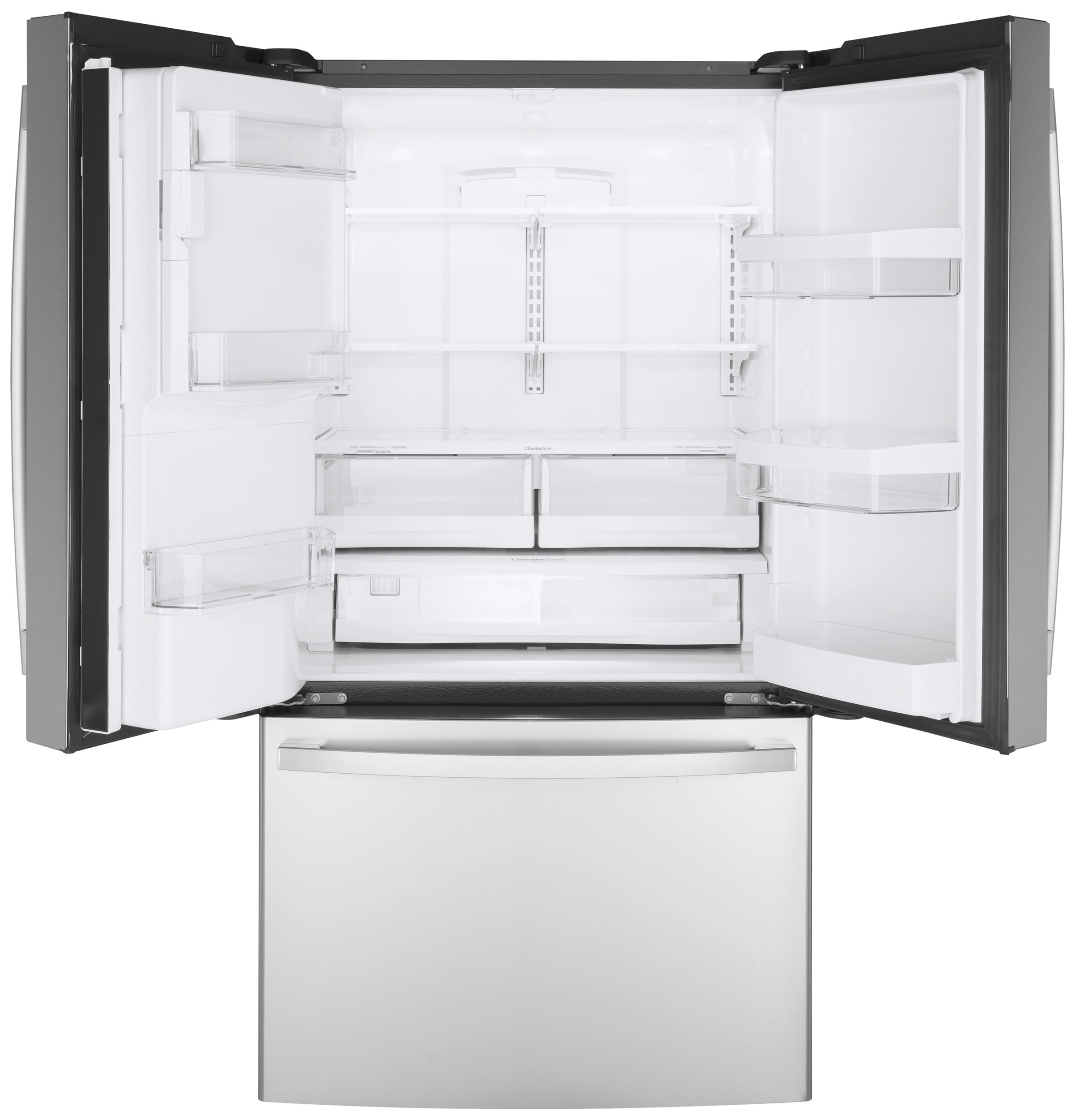 Showcase LED lighting – positioned throughout the interior and under fresh food doors to spotlight foods inside the refrigerator and in the freezer