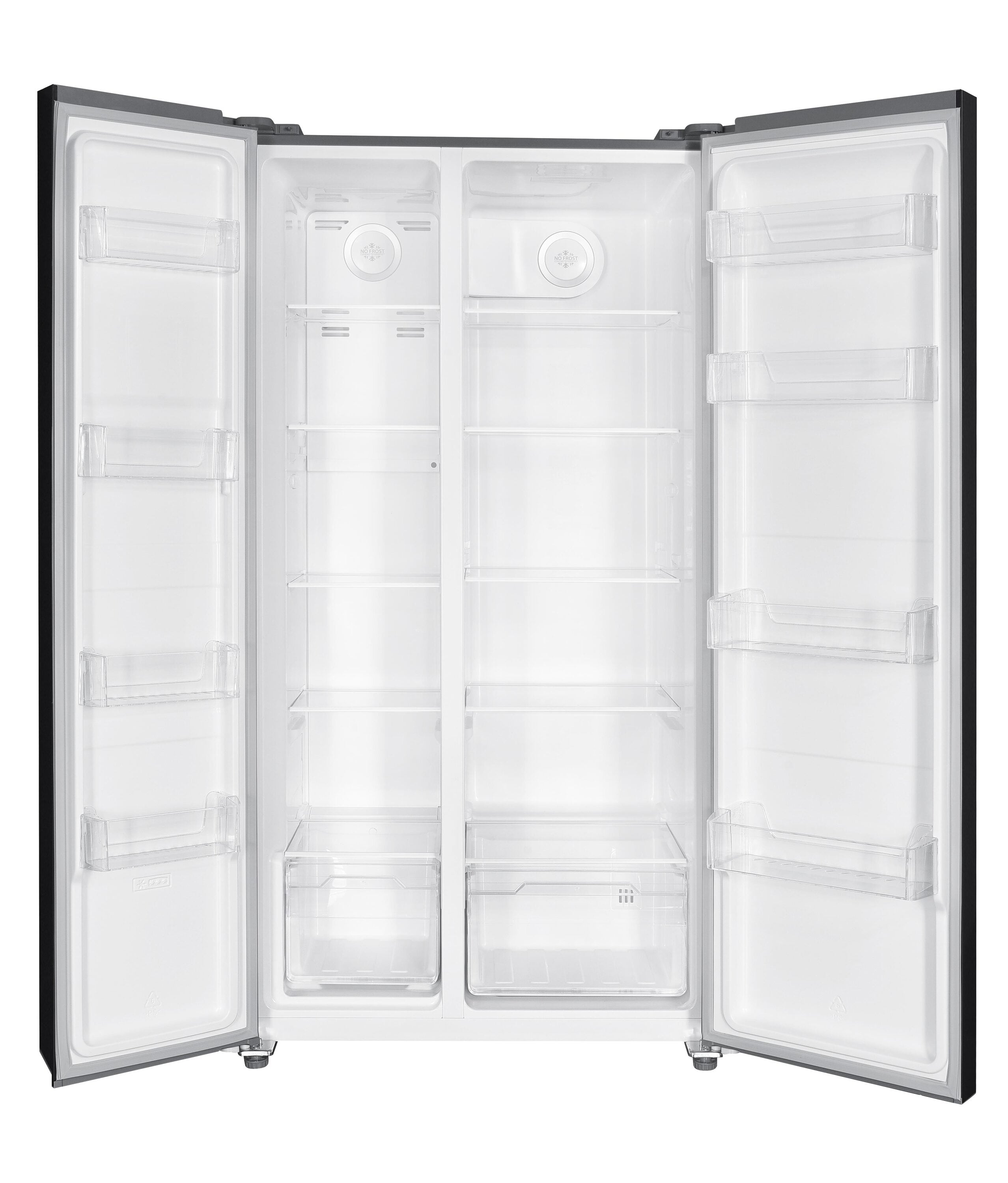 Capacity of multiple adjustable glass shelves, and door bins in both sides