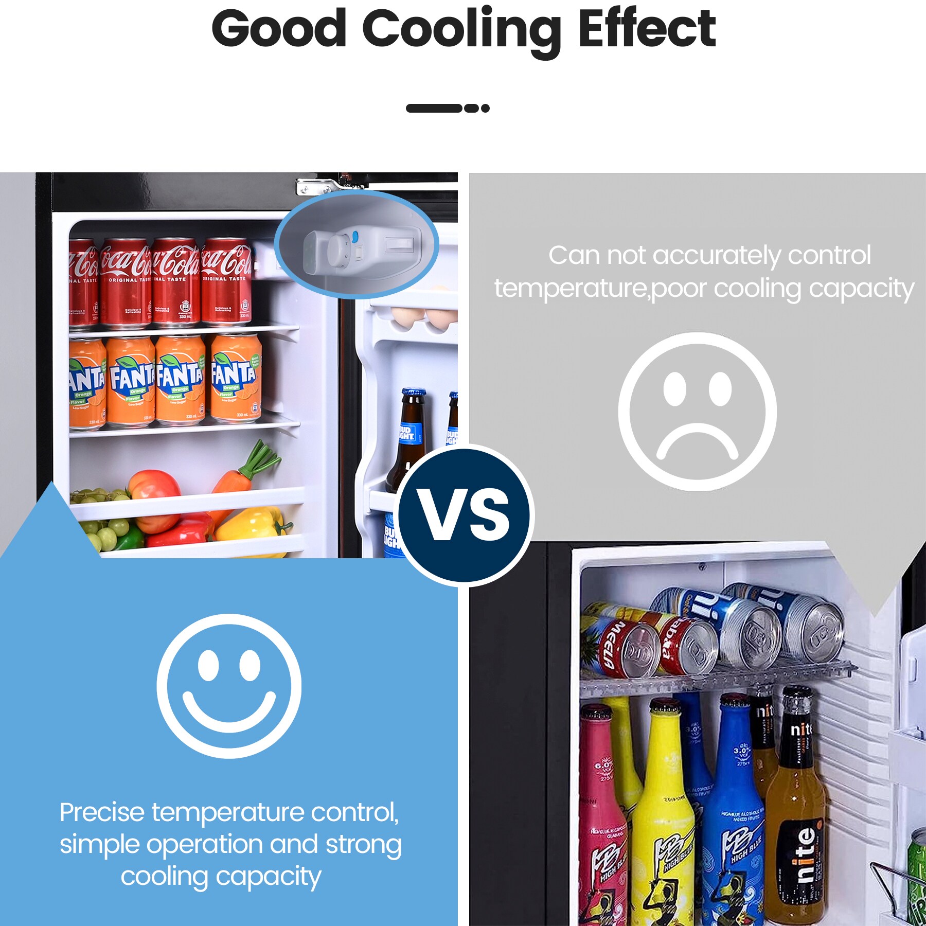 Adjustable Temperature Control: Adjustable Temperature Control: Our refrigerator can be adjusted to 5 to 10℃ in the refrigerator compartment / 0 to -18℃ in the freezer compartment; Turn the thermostatic knob, there is no fixed gear, the knob is steplessly adjusted; Meet the different requirements of different foods for temperature.