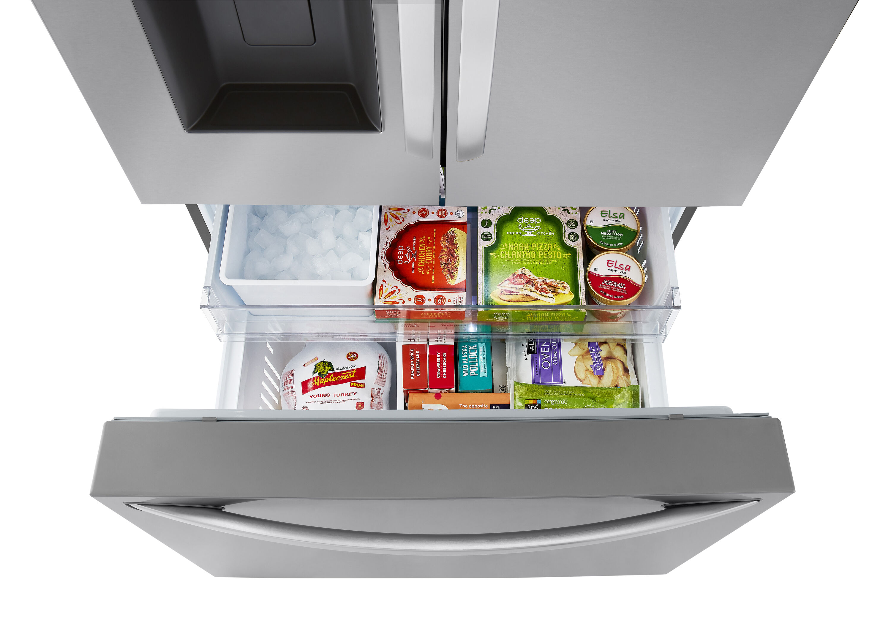 With the largest capacity in its class, at 26 cu. ft., this LG three-door counter depth refrigerator can not only stand flush with your countertop to provide a seamless look, it’s got the room to store all your family’s favorite foods.
