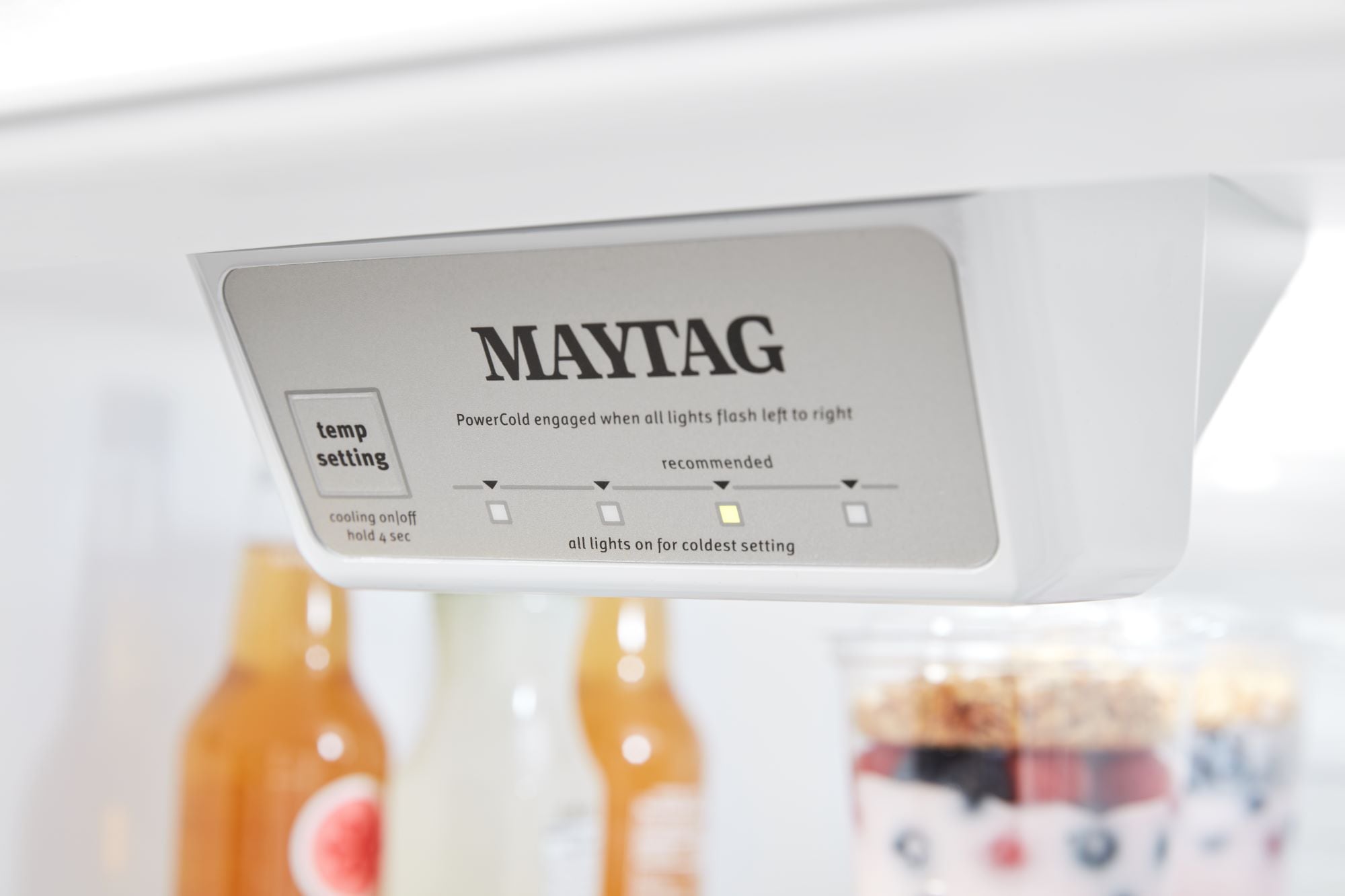 Maytag® top-freezer refrigerators are built to hold the cold with features like the PowerCold® feature that chills down the refrigerator to help keep everything cool with the touch of a button—even if the whole family’s been browsing with the door open. Plus, it’s available in Fingerprint Resistant Stainless Steel to keep this fridge looking great. Inside this 18 cu. ft. model you’ll also find the BrightSeries™ LED lighting. It casts a bright, white light and uses less energy than incandescent bulbs.