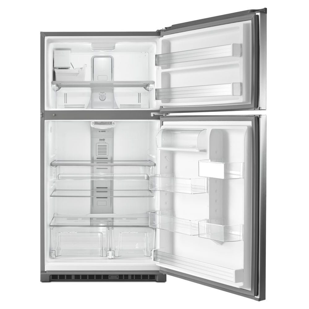 Maytag® top-freezer refrigerators are built to hold the cold with features like stainless steel handles that embody the heavy-duty strength Maytag is known for. The EvenAir™ cooling tower keeps food cool without breaking a sweat, while the PowerCold® feature chills down the refrigerator to help keep everything cool — even if the whole family’s been browsing with the door open. The electronic temperature controls are even up front to make maintaining the coolness of your refrigerator easy with the touch of a button. Plus, it’s available in Fingerprint Resistant Stainless Steel to keep this fridge looking great. Inside this 21 cu. ft. top-freezer refrigerator you’ll also find BrightSeries™ LED lighting. It casts a bright, white light and uses less energy than incandescent bulbs.