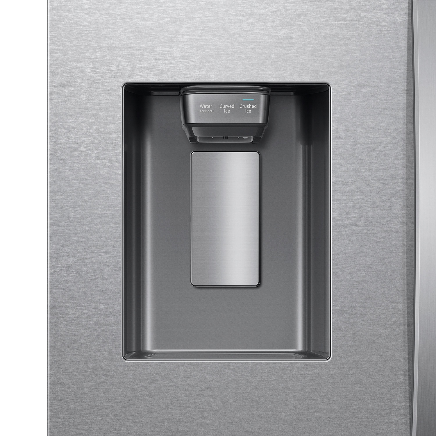Samsung Mega Capacity 3-Door French Door refrigerator with 30 cu. ft. comes with four types of ice and a modern design. Store more groceries, including big and bulky items. The Dual Auto Ice Maker makes two types of ice – cubed, or Ice Bites™ while the external dispenser offers two additional ice options, curved and crushed.