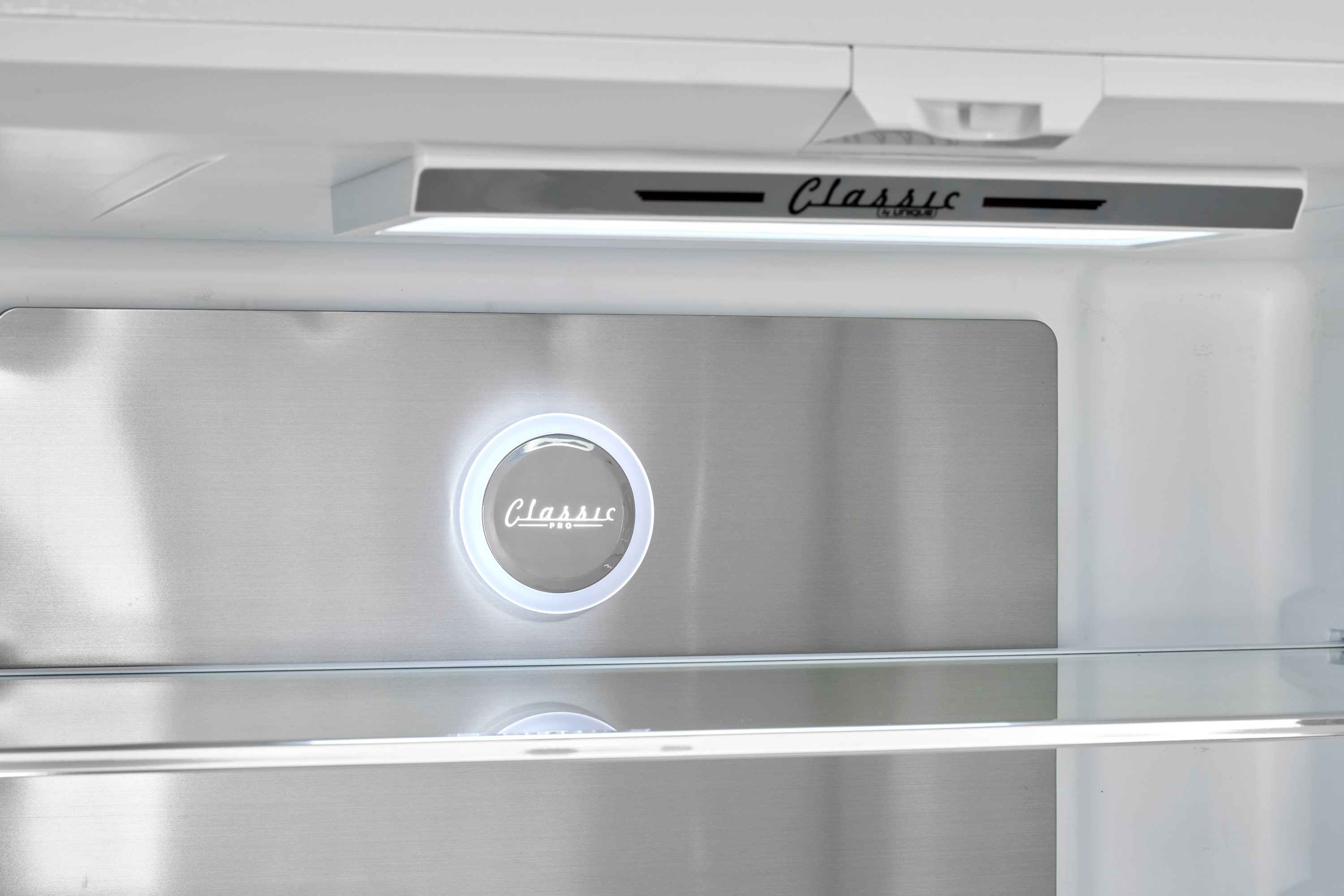 Intuitive digital control panel with LED display with quick freeze setting and door alarm