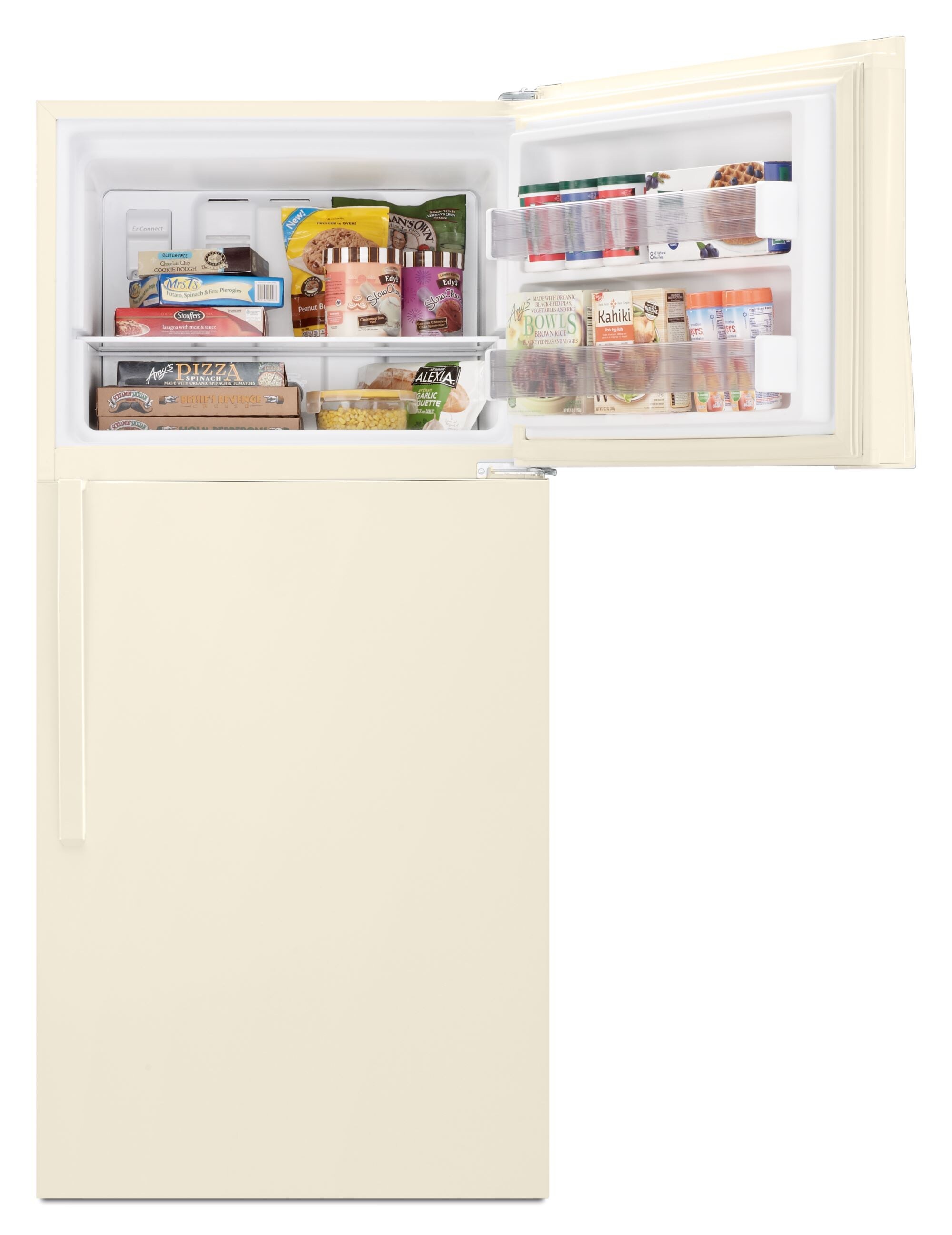 Get purposeful spaces that store more of your favorites. Our refrigerator with an optional icemaker (sold separately) lets you forget about filling ice trays. Fit more items on each shelf in this refrigerator with Frameless Glass Shelves and keep fruits and vegetables in their ideal environment with Humidity-Controlled Crispers. Plus, 19 Cu. Ft. Capacity gives you room for it all.
