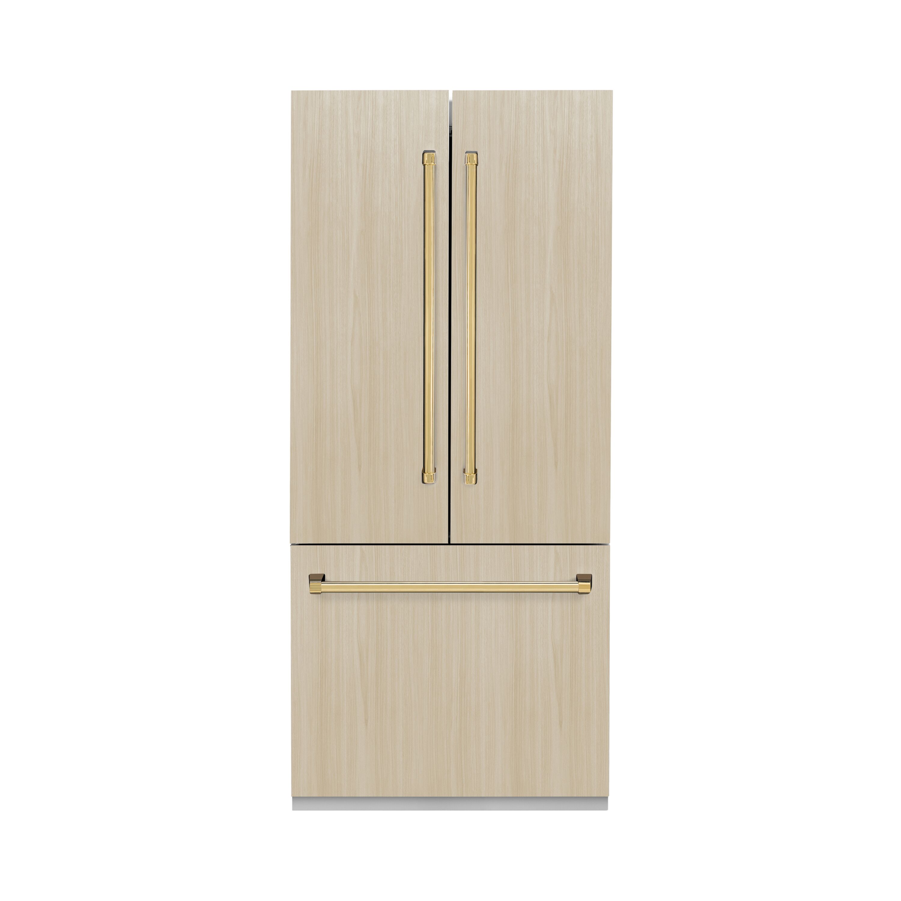 Luxury isn’t meant to be desired – it’s meant to be attainable. The ZLINE Autograph Edition 36 in. 19.6 cu. ft. Panel Ready French Door Built-In Bottom Freezer Refrigerator with Water Dispenser and Ice Maker with Polished Gold Accents (RBIVZ-36-G) provides the ultimate upgrade to the center of your home by pairing premium dual cooling technology with enhanced storage capacity for multiple grocery items. Achieve ZLINE Attainable Luxury® excellence with innovative features designed to enhance your kitchen’s cooling and freezing capability.