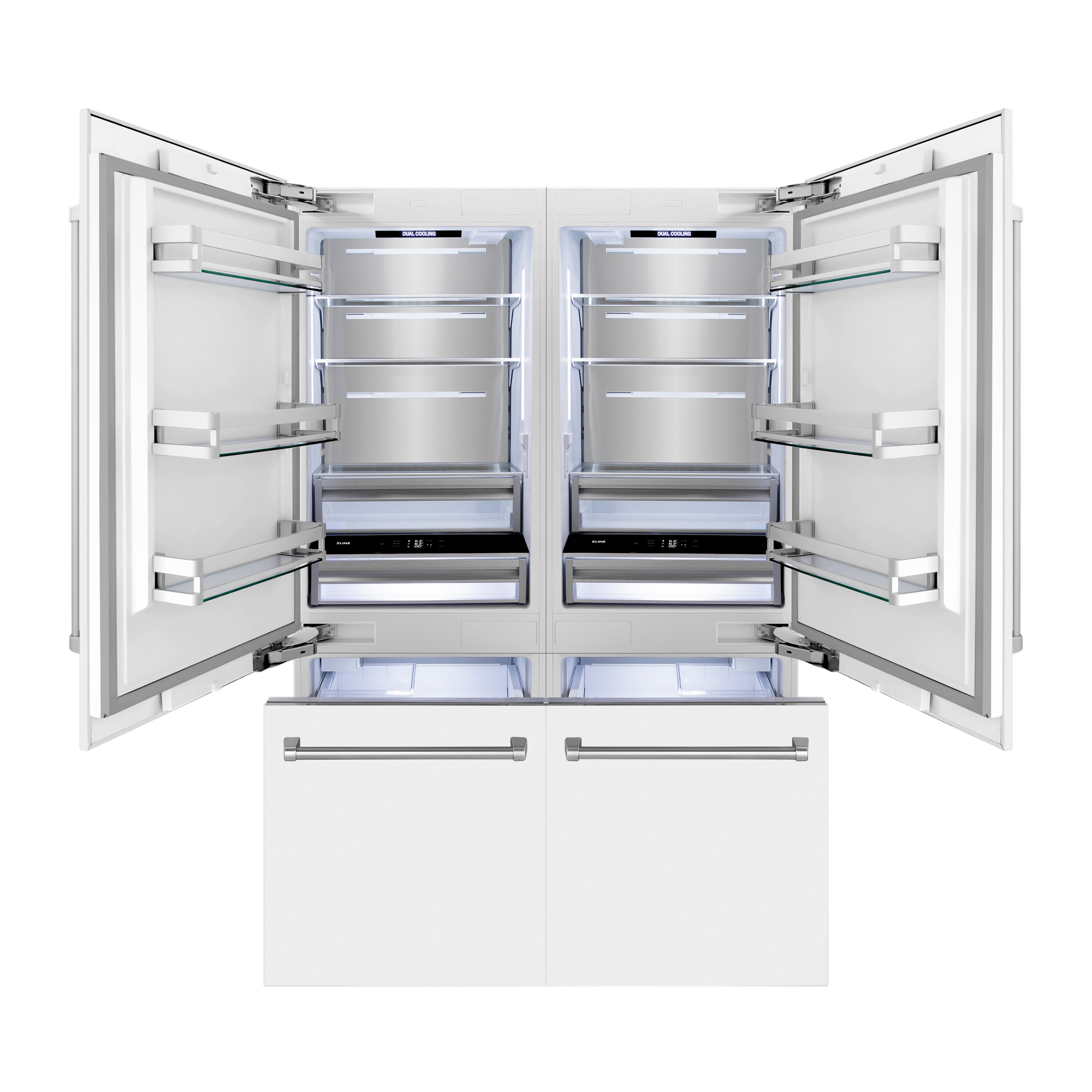 Luxury isn’t meant to be desired – it’s meant to be attainable. The ZLINE 60 in. 32.2 cu. ft. French Door Built-In Bottom Freezer Refrigerator with Water Dispensers and Ice Makers in White Matte (RBIV-WM-60) provides the ultimate upgrade to the center of your home by pairing premium dual cooling technology with enhanced storage capacity for multiple grocery items. Achieve ZLINE Attainable Luxury® excellence with innovative features designed to enhance your kitchen’s cooling and freezing capability.