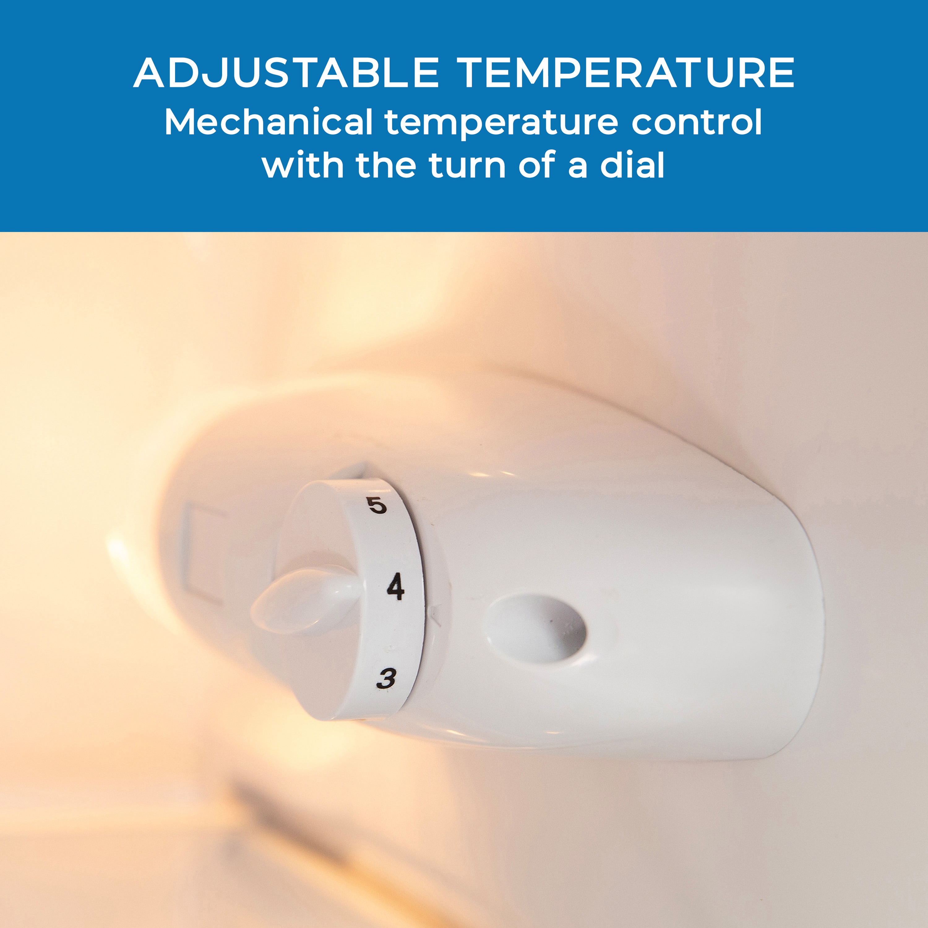 This retro-inspired compact refrigerator combines vintage charm with modern functionality, delivering a cool, colorful, and sophisticated aesthetic that enhances any setting. With a capacity of 3.0 cubic feet, this double-door freezer/refrigerator is the perfect space-saving solution for your home, dorm room, office, or recreational area. Its thoughtful design ensures that your favorite foods and beverages are always within reach, making it an ideal addition to small spaces where style and practicality matter most. The double-door design offers convenient access to all your essentials. The top freezer section provides ample space for storing frozen foods in bulk, helping you save money by reducing trips to the store. Meanwhile, the refrigerator section is designed to keep salads, fruits, snacks, and beverages fresh and easily accessible throughout the day. The manual defrost system allows you to maintain optimal cooling performance with minimal effort, giving you full control over the unit’s temperature settings. Storage is made simple with built-in door shelves and a beverage can dispenser. The door design accommodates a variety of items, including two-liter bottles, assorted condiments, and up to six 12-ounce cans, ensuring that your fridge stays organized and functional. Inside, two adjustable and removable glass shelves provide versatility in food storage, allowing you to customize the layout to suit your needs. These glass shelves are easy to clean and provide a clear view of your food items for added convenience. The fridge is equipped with mechanical temperature controls, allowing you to adjust the cooling settings quickly and easily with the turn of a dial. This feature ensures that your food and beverages are stored at the perfect temperature for maximum freshness. The retro-inspired exterior design adds a chic and timeless touch, making this compact fridge not only a practical appliance but also a stylish focal point in any room. Backed by Avanti’s 1-year manufacturer-limited warranty, this refrigerator offers reliability and peace of mind. Whether you’re looking to enhance your kitchen, upgrade your dorm, or add convenience to your office space, this compact fridge delivers on all fronts. Its combination of retro style, modern features, and compact efficiency makes it a standout choice for those who value both form and function.