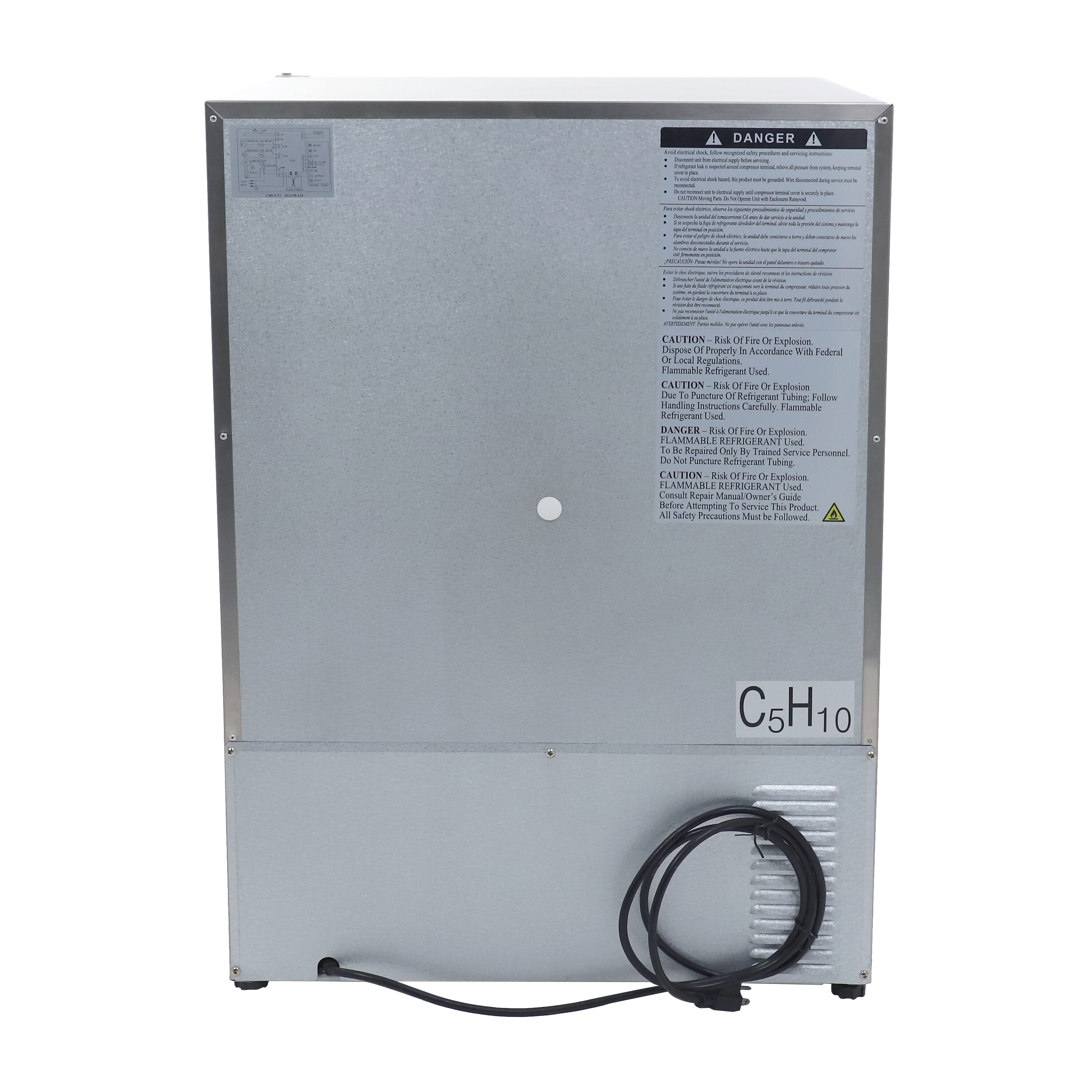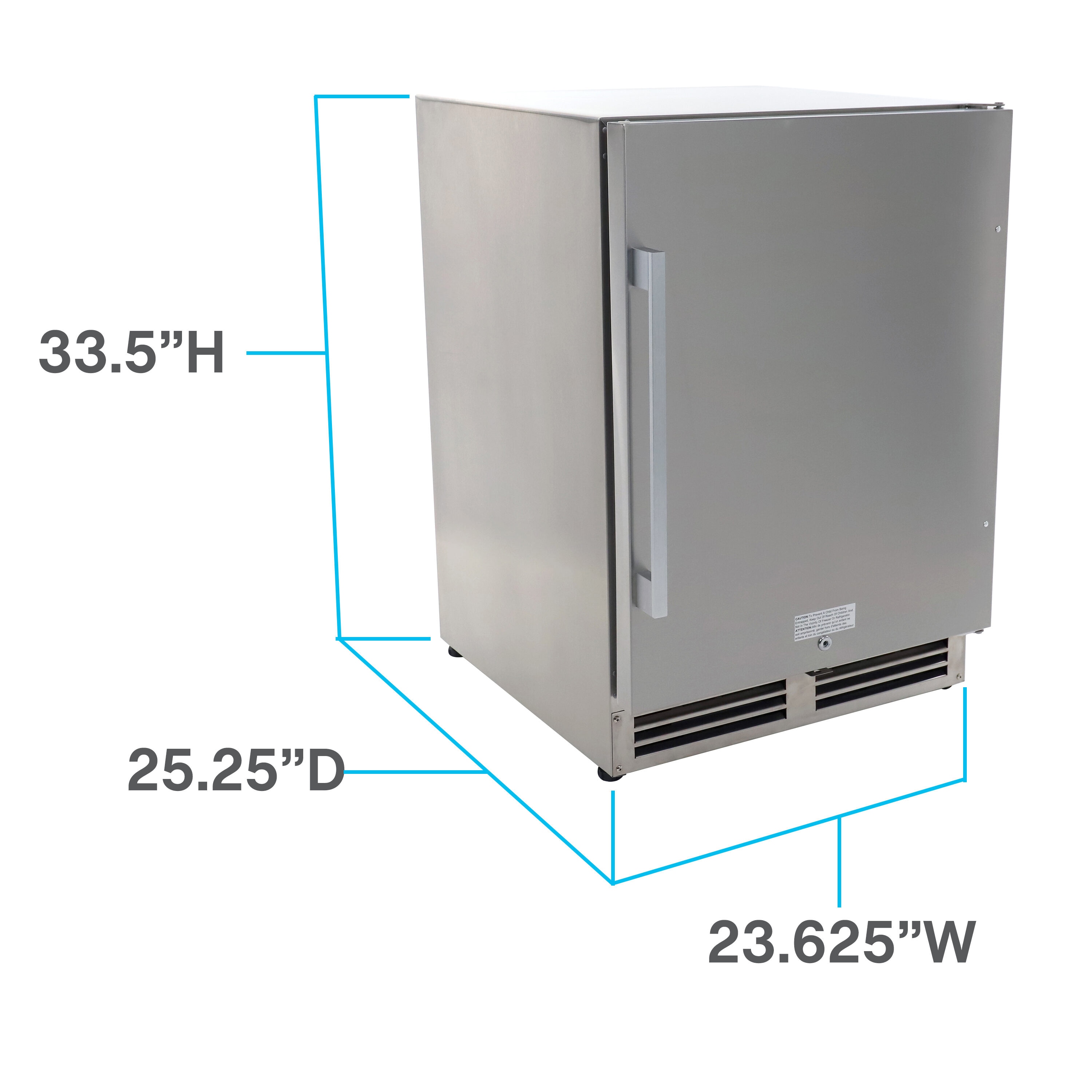 Host bigger gatherings and keep more food on-hand with Avanti’s ELITE Series Commercial Outdoor Refrigerator. Built from durable 304 stainless steel, this outdoor fridge withstands rain and humidity and won’t rust or corrode. Offering 5.4 cubic feet of space, this bar and patio fridge has enough room to hold beer and soda plus fresh ingredients for barbecues and summer parties. Three removable chrome plated wire shelves slide out to fit tall wine bottles and mineral water. With operating temperatures from 50 to 110 F, this outdoor mini fridge keeps items chilled, no matter how hot it gets outside. Designed for built in or freestanding use, the refrigerator features front venting to keep it running smoothly under cabinets and a reversible door that opens left or right to fit all room configurations. Move and lock this commercial refrigerator into place with four optional casters (not included) and set temperatures from 36 to 64 F with its LED thermostat display. Switch on the white LED interior light to easily find what you need, and always know your food and fridge are in tip top shape with automatic defrost. Covered by the Avanti 1-Year Limited Warranty, keep more food chilled longer and give your outdoor kitchen the fridge it deserves.