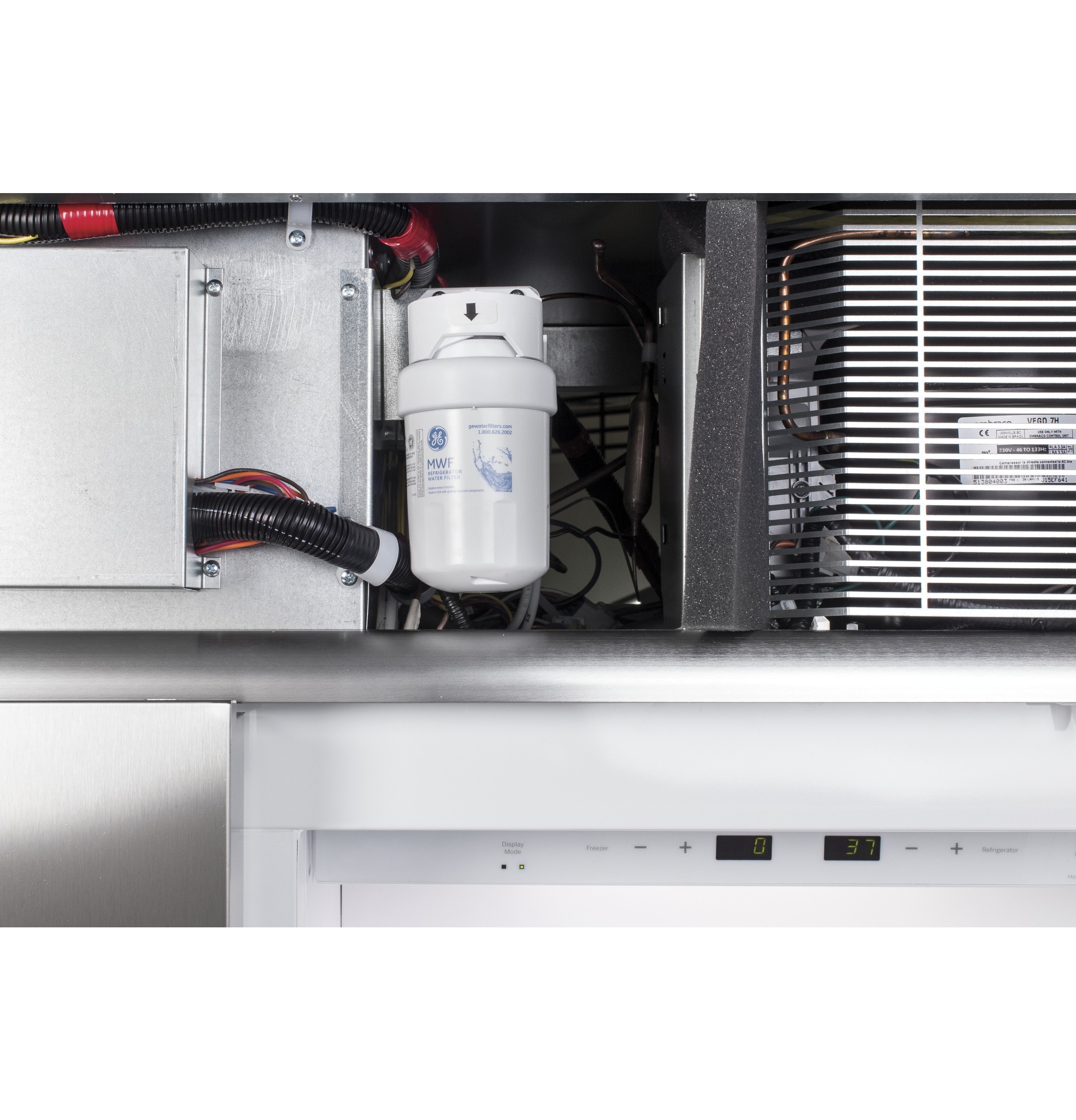 An advanced filtration system removes 98% of certain pharmaceuticals from the ice maker’s waterline (removes 98% of ibuprofen, atenolol, fluoxetine, progesterone and trimethoprim; these pharmaceuticals are not necessarily in all users’ water)