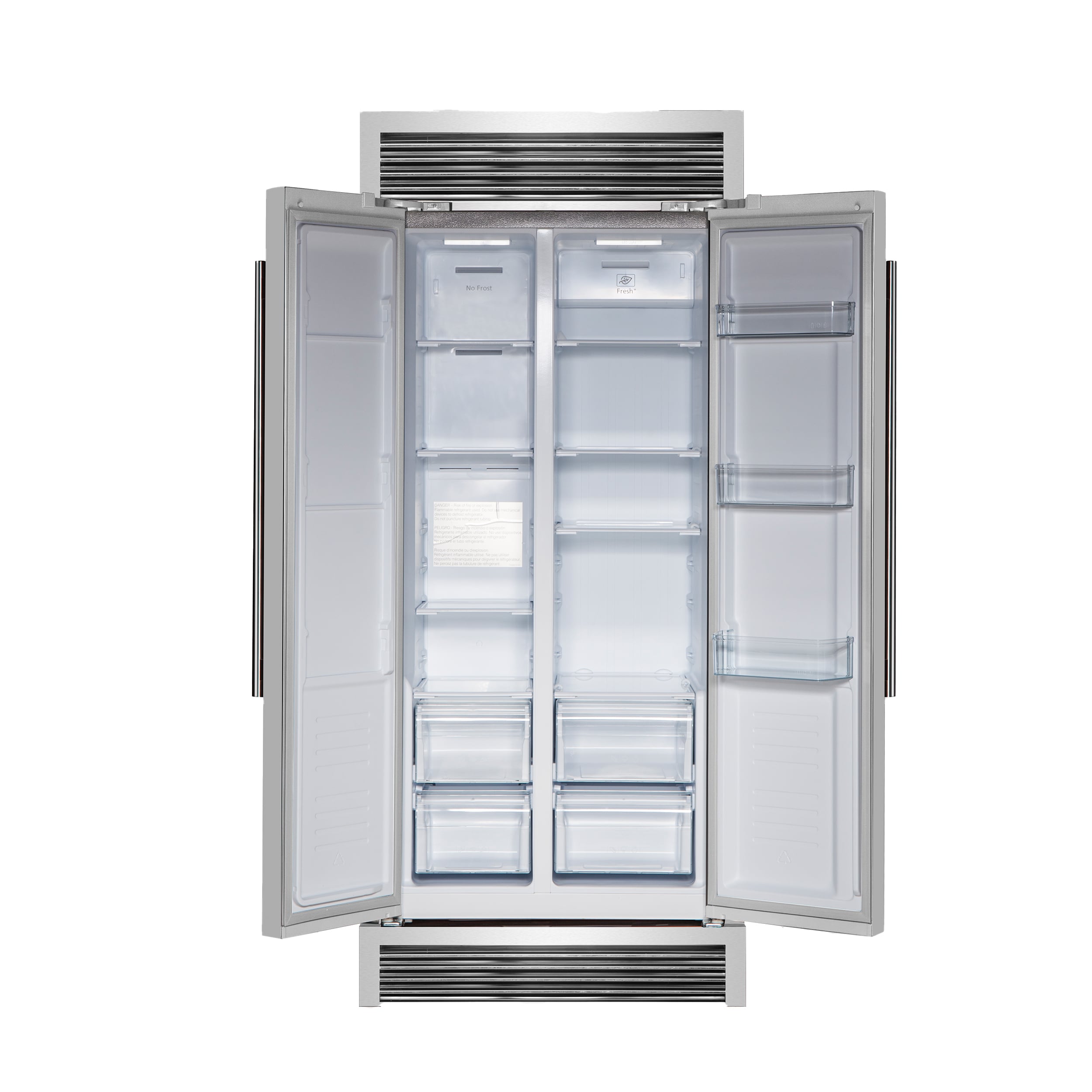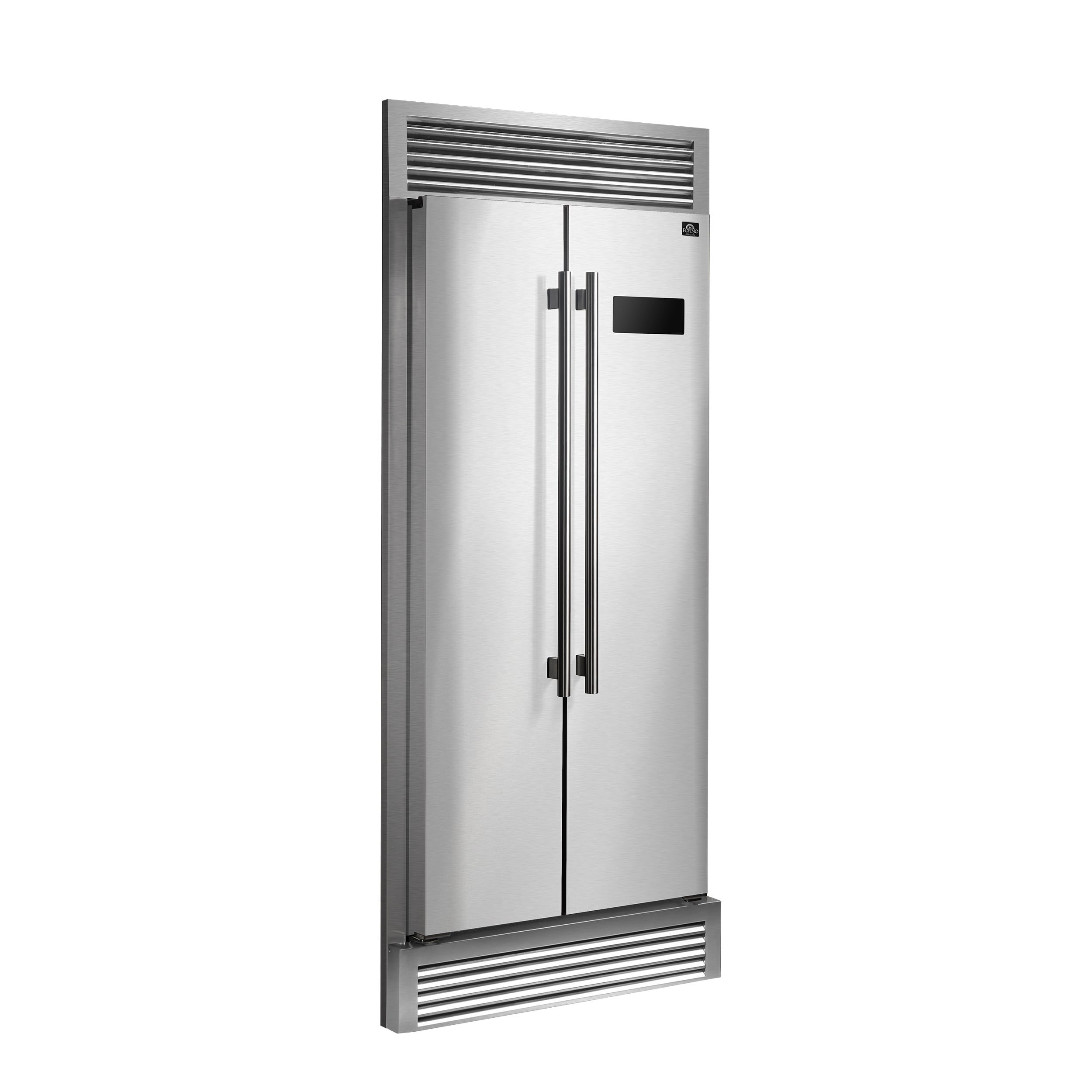 The Forno 33 Inch Salerno 15.6 Cu.Ft. capacity side-by-side frost-free refrigerator with decorative grill trim. Also comes equipped with the latest technology, including temperature control system that adjusts temperatures to keep food and beverages. A simple Led touch panel allows for easy access and control of all features. Fresh food section has a 9.54 cu.ft. capacity with three adjustable glass shelves for organizing and storing items, as well as 2 crisper drawers and 3 door bins for additional storage. Freezer section has 6.08 cu.ft. capacity also includes three adjustable shelves and 2 pull-out drawers for easy access, along with 3 door bins. With all these features, you’ll be able to keep your food organized and fresh.E-star energy rating. Skip the high price tags without sacrificing quality and performance. Lower the cost of living with Forno.