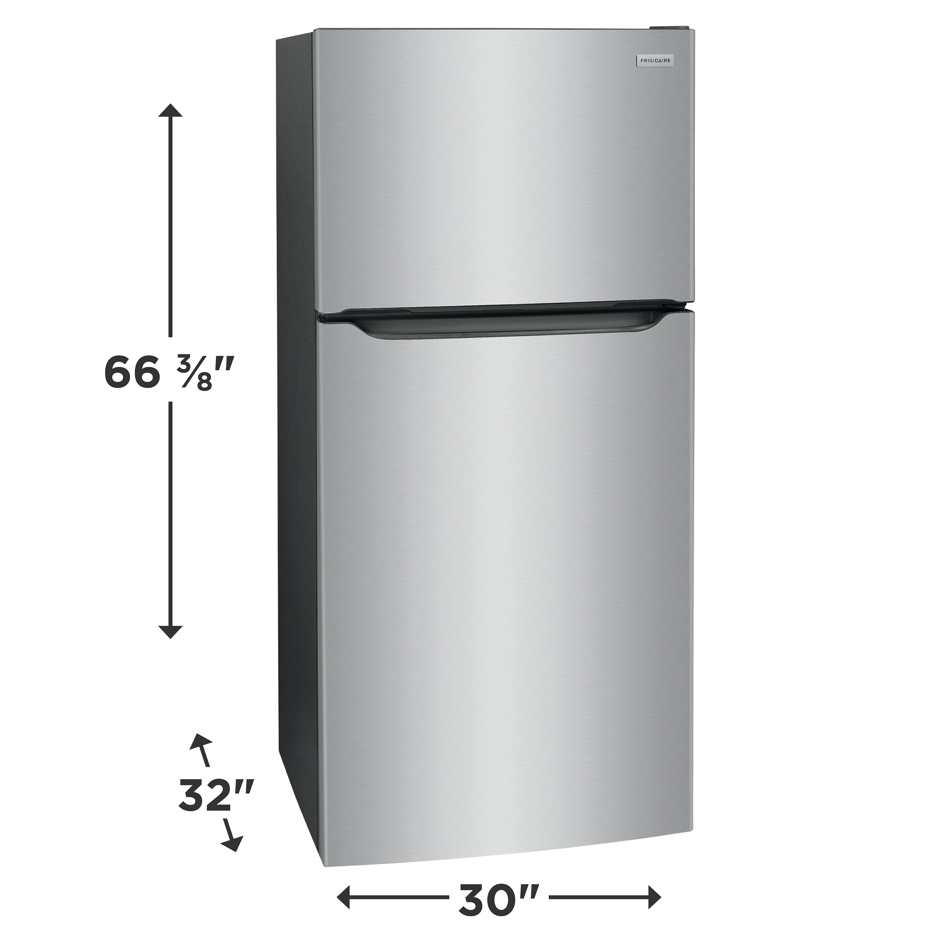 This Frigidaire 20 cubic foot top freezer refrigerator fits in the same sized cutout as a traditional 18 cu. Ft. Model (30-in width x 66-in height cutout. This refrigerator features the EvenTemp™ cooling system, precise temperature control which keeps food at one ideal temperature. Spacious interior storage options include a full-width deli drawer, generous door bins, and a full-width glass freezer shelf. This Lowe’s Exclusive is similar to FFTR2045VS but features EasyCare™ Stainless Steel with an easy-to-clean fingerprint-resistant finish.