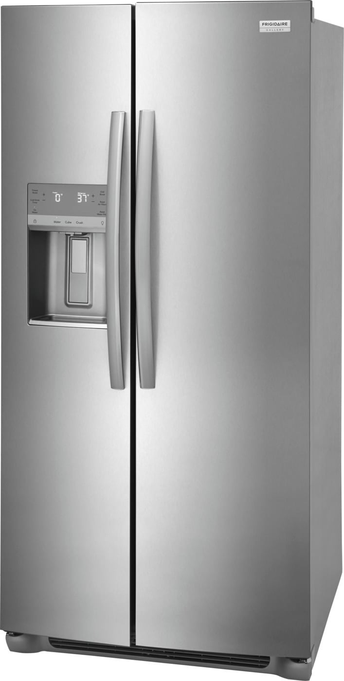 This Frigidaire Gallery 33″ Side-by-side refrigerator offers our advanced CrispSeal® Plus Crisper. This crisper keeps produce fresh with a seal that blocks out dry air, plus an added filter reduces the gas that causes produce to ripen faster. It also features our EvenTemp™ Cooling System which keeps your food fresh by reacting quickly to temperature fluctuations and constantly circulates cold air throughout the fresh food and freezer compartments, ensuring a consistent cool from top to bottom.