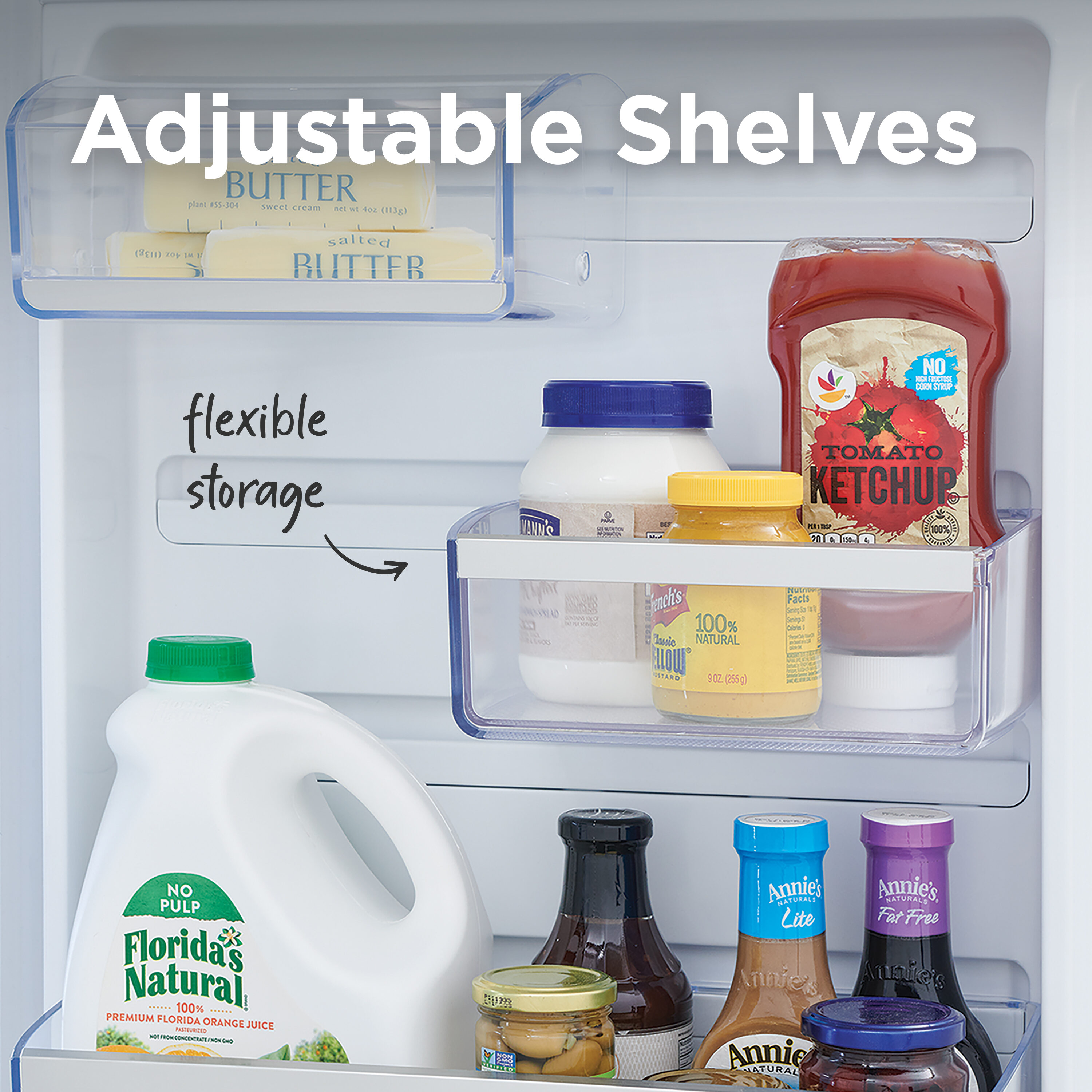 Get more storage out of your refrigerator with clever organization solutions that maximize usable space, including in-door condiment storage, a slide-under shelf, a SnackZone, a flexible bin which can be used as crisper or an open compartment, and accessory railing system which works with our optional storage pan and wine rack