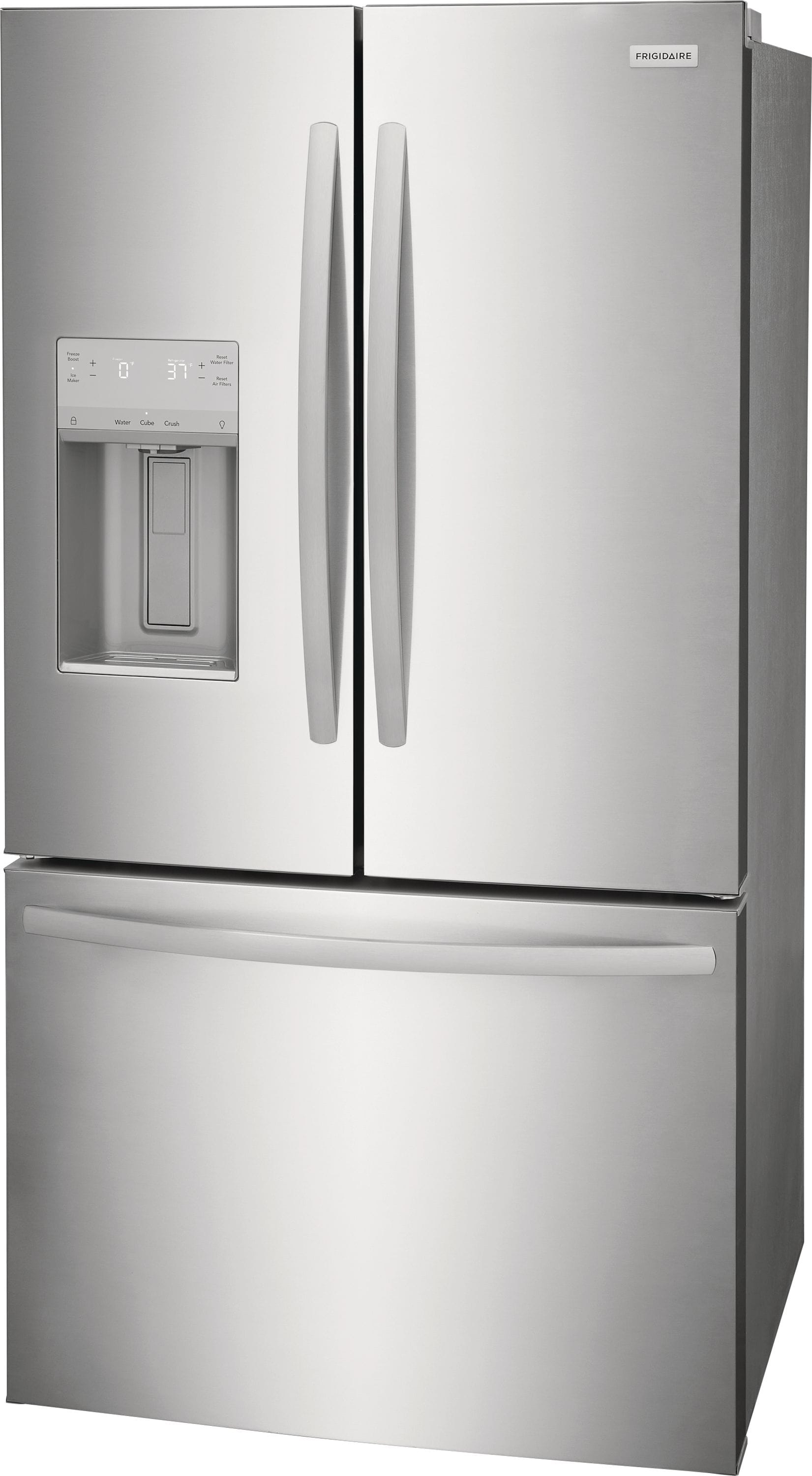 This Frigidaire French door refrigerator helps keep fruits and vegetables fresh longer with CrispSeal® crispers which blocks dry air from entering your crisper to avoid premature shriveling. Easily stay organized with a full width deli drawer and large door bin storage. Keep safe, great tasting water flowing. Our filter reduces up to 99% of contaminants, cuts back on plastic and saves the cost of bottled water (NSF and WQA certified).