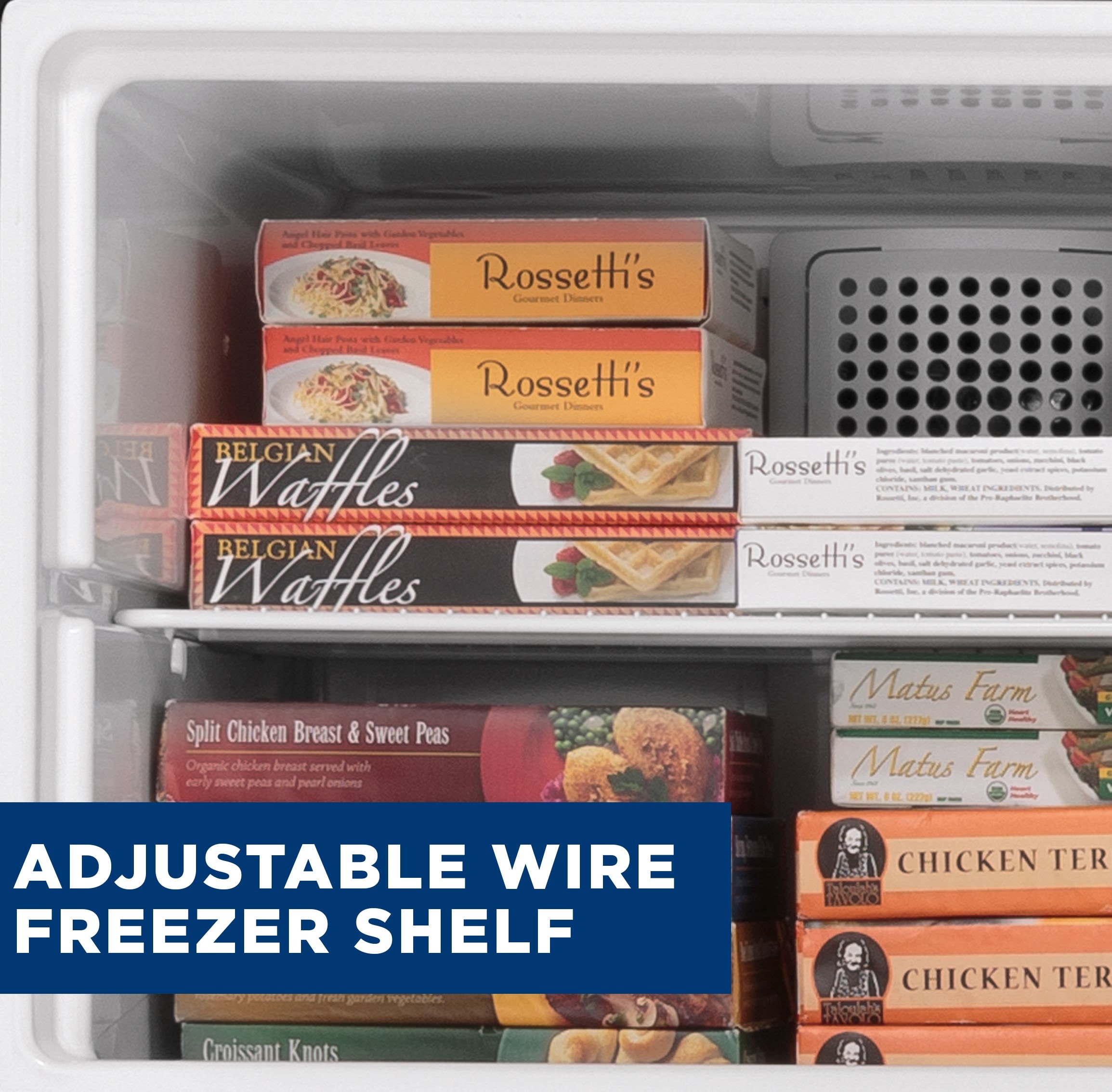 Adjustable wire freezer shelf – easily adjusts between two positions to accommodate items of all shapes and sizes