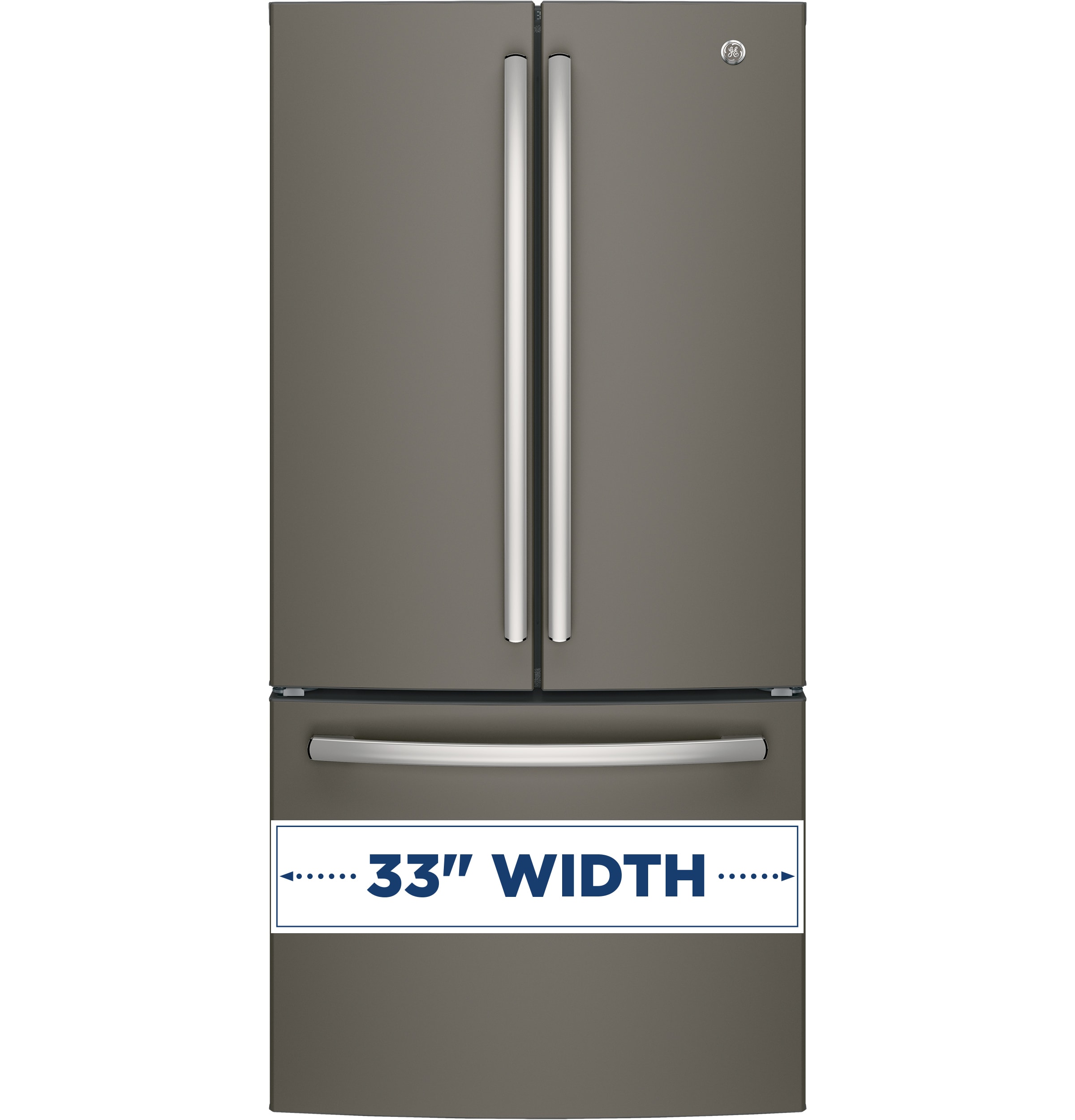 33-in width – a compact design fits in smaller spaces, yet still offers the large storage capacity of a French-door refrigerator