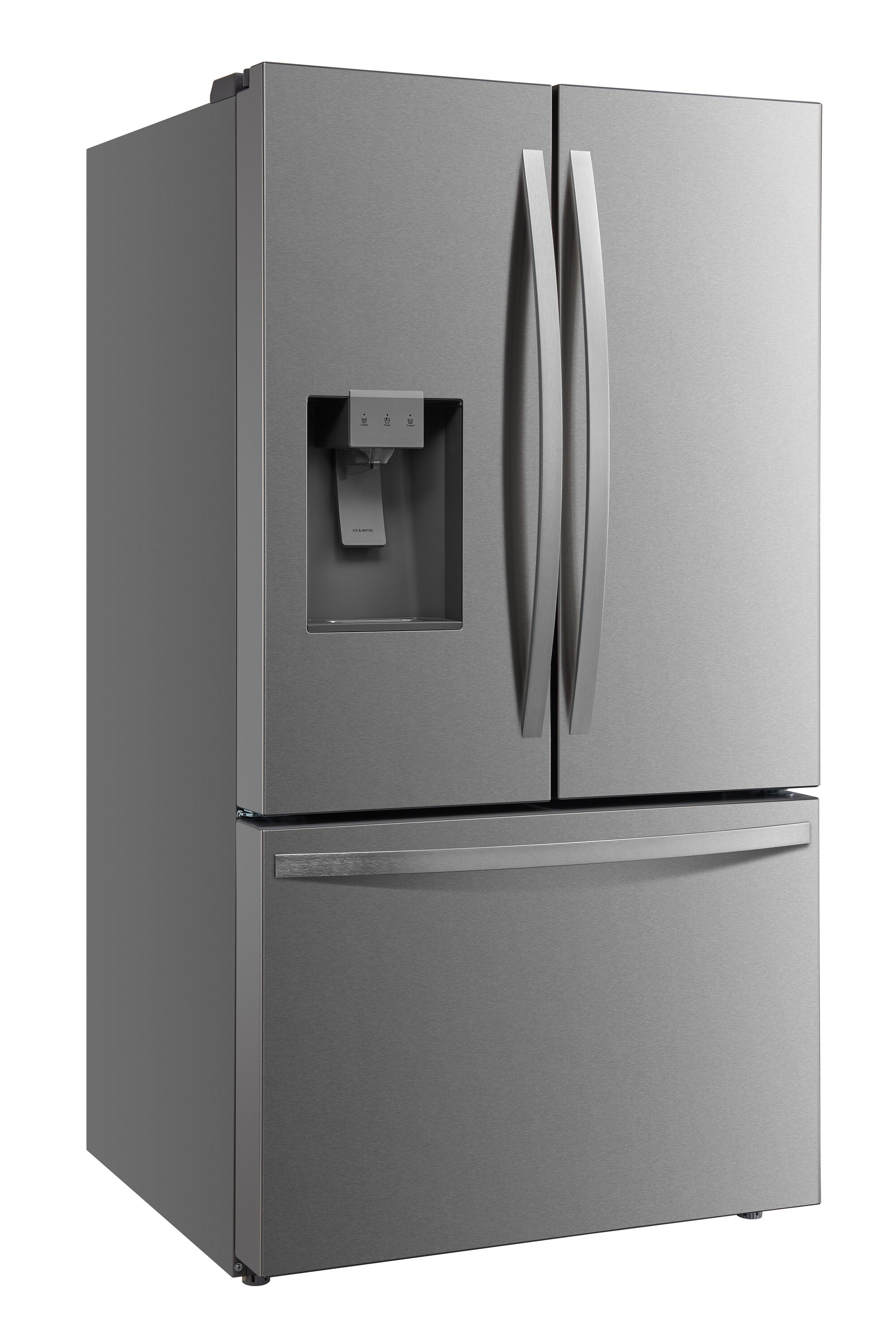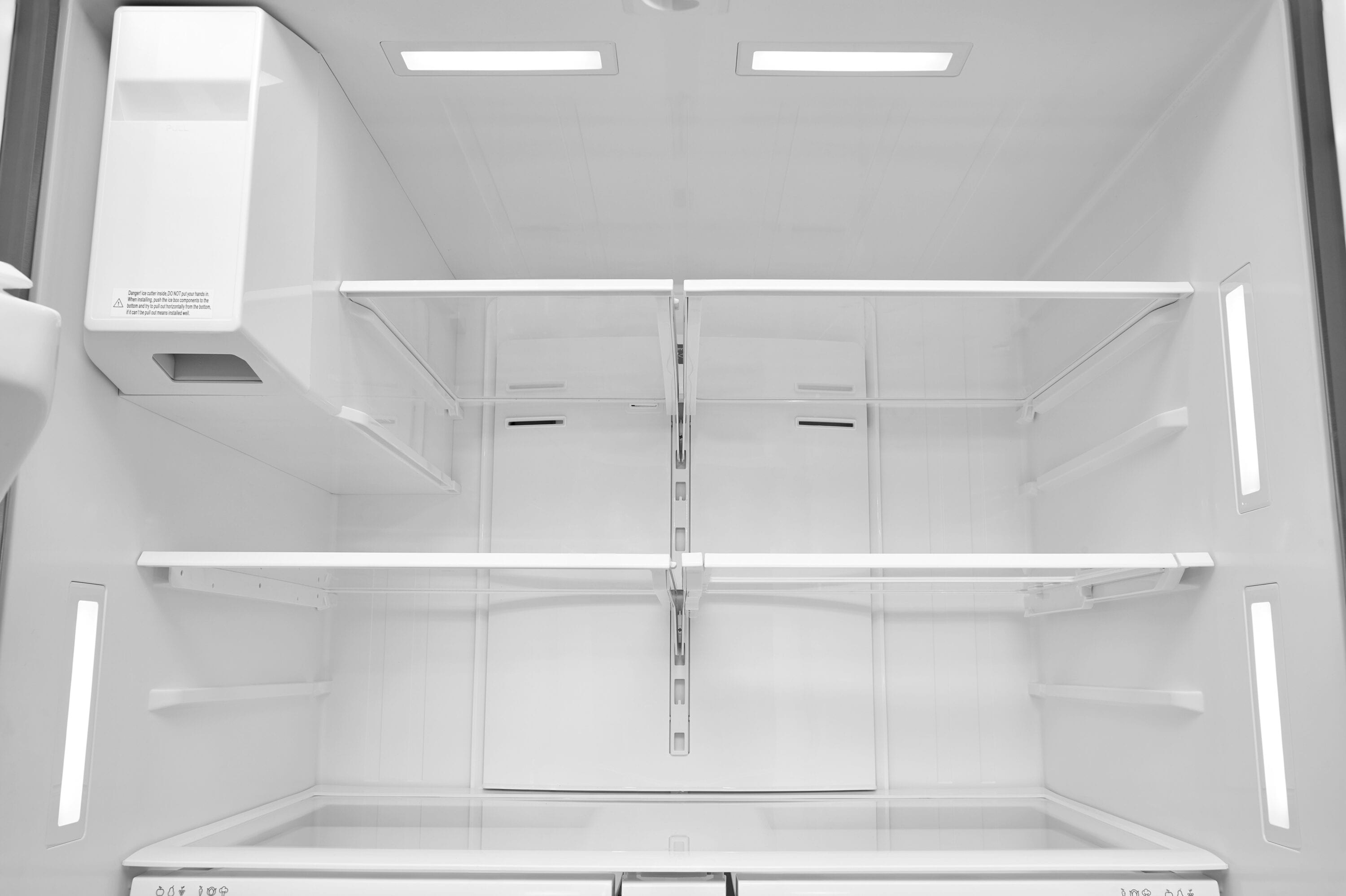 THE Kenmore 28.6 cu. ft. French Door Refrigerator offers spacious storage and advanced features. The Inverter Compressor maintains consistent temperatures and quiet operation. The Accela Chill feature rapidly cools groceries, while the Multi-Flow Air System ensures even cooling throughout. The Dual Evaporator provides independent cooling for the refrigerator and freezer to optimize temperature and humidity. Adjustable glass shelves, a foldable sliding shelf, and spill-proof shelves provide flexible storage and easy cleanup. The full-width pantry drawer accommodates large platters, while humidity-controlled crispers preserve freshness. The two-tier freezer drawer organizes frozen items, and gallon-size door bins free up shelf space. The NSF®-certified water filter, plus a water and ice dispenser, offer clean, high-quality water and ice. ENERGY STAR® certified for efficiency while fingerprint-resistant stainless steel makes cleaning easy, and LED lighting brightens every corner.
