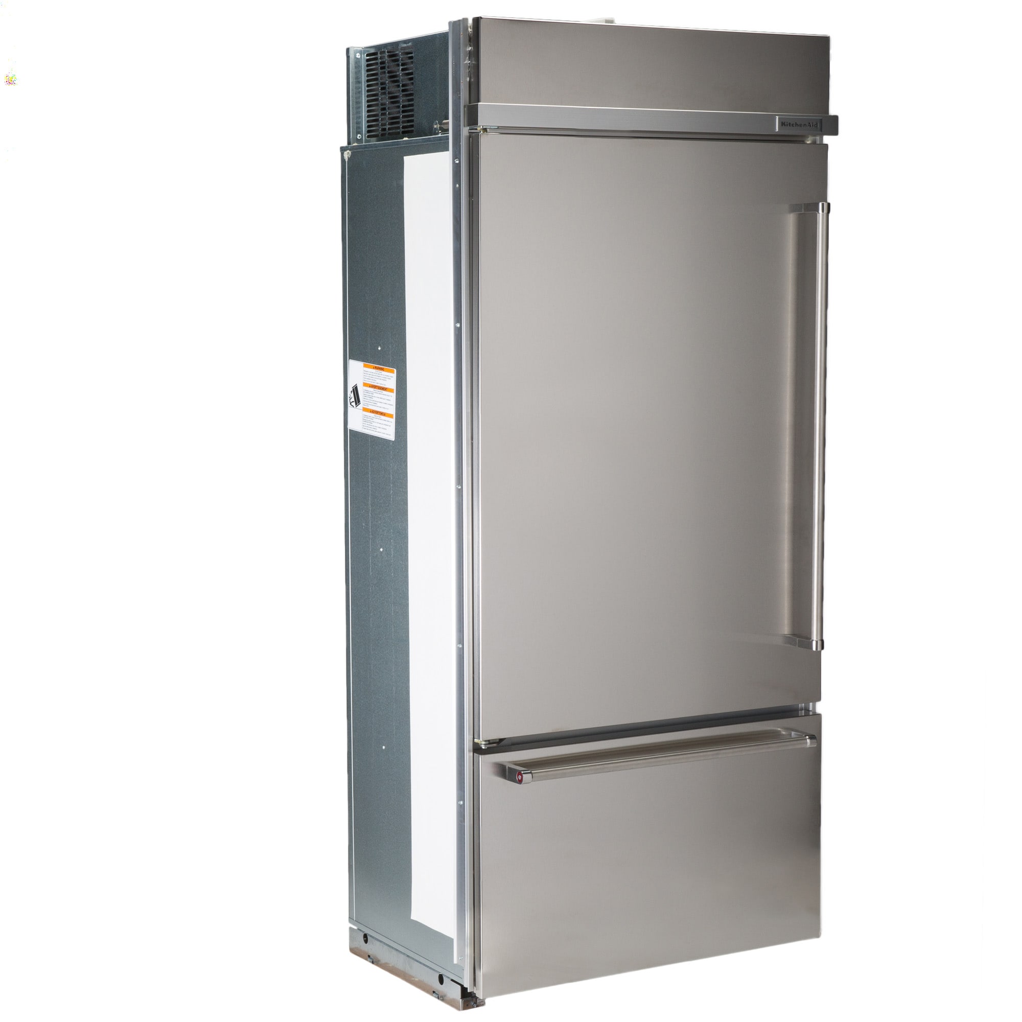 Professionally-inspired design – the striking built-in refrigerator features satin textured handles with iconic KitchenAid brand medallions while a platinum interior design enhances the beauty on the inside