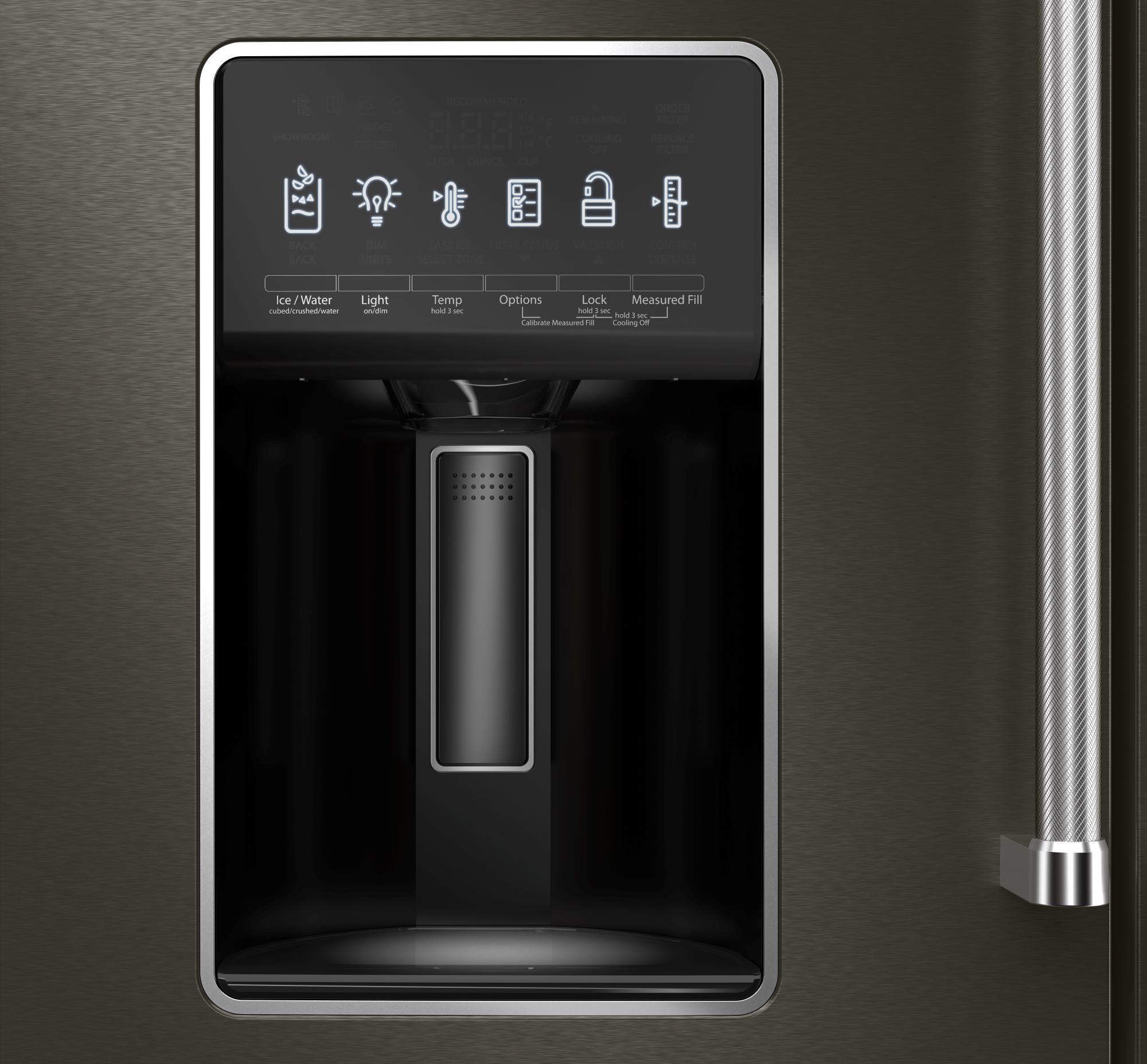 Exterior Ice and Water Dispenser for quick access without opening the door