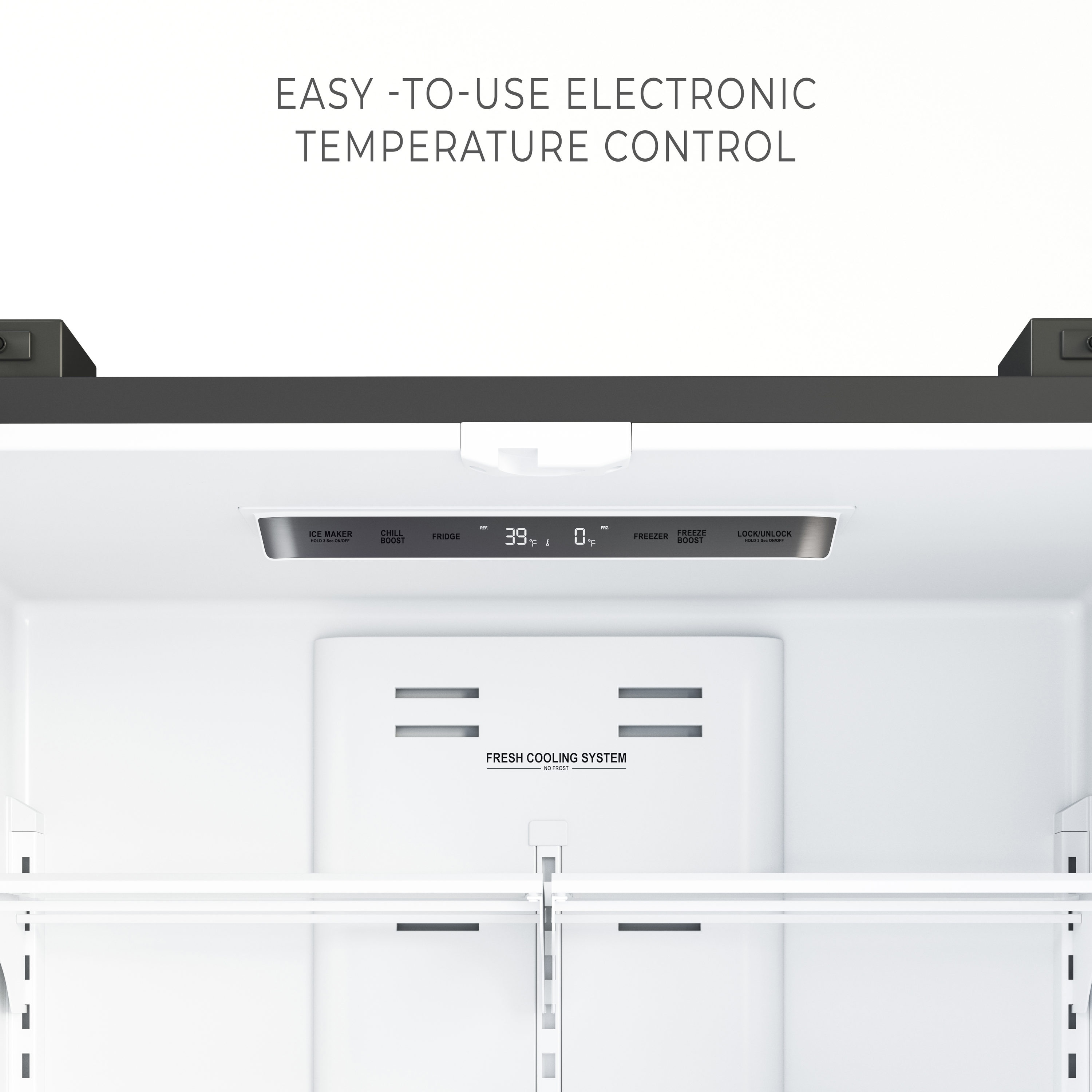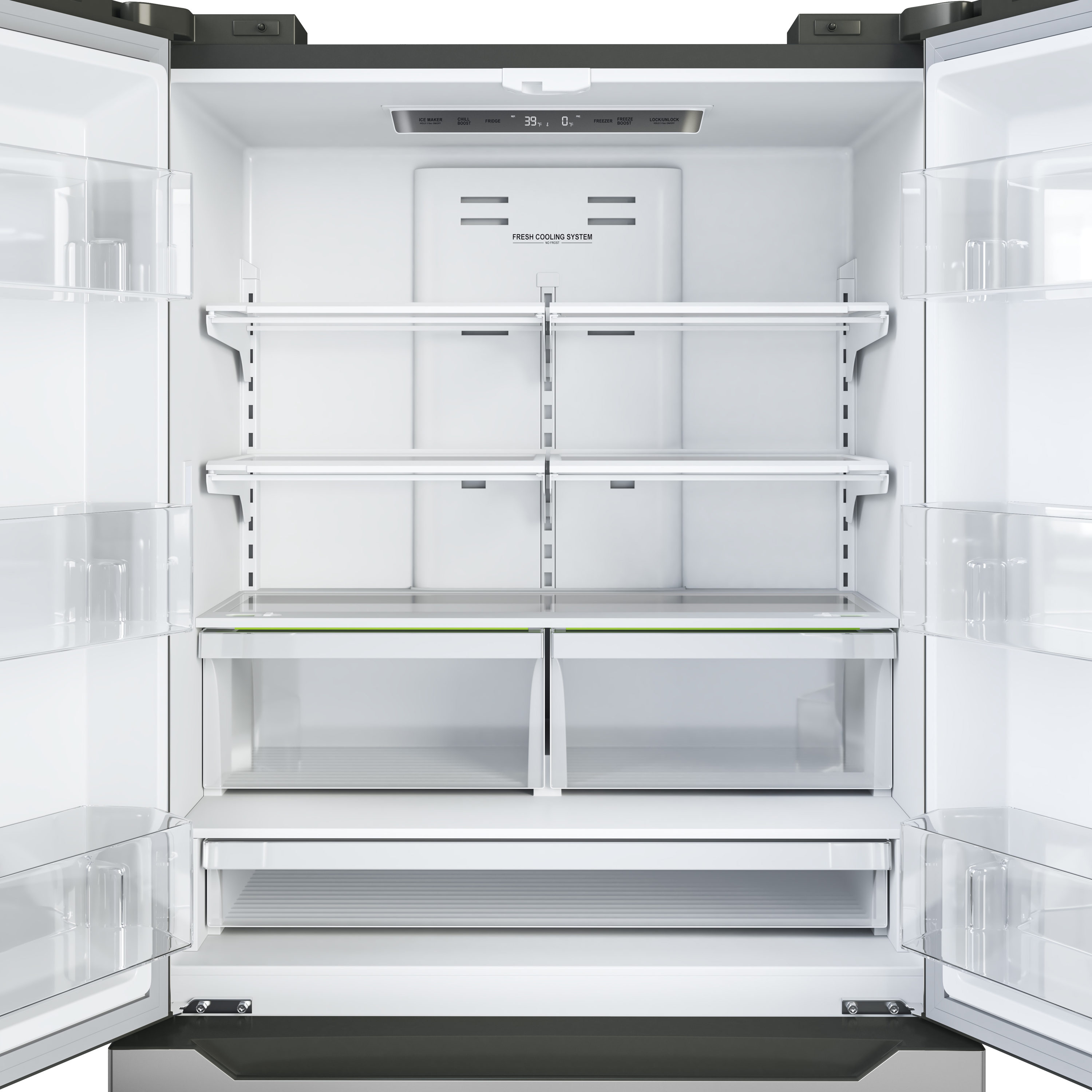 Precision Temperature Control – Designed with a double-flow cooling system and digital temperature control our stainless-steel fridge offers an equal distribution of cool temperatures to keep fruit, vegetables, and meat fresher, longer.