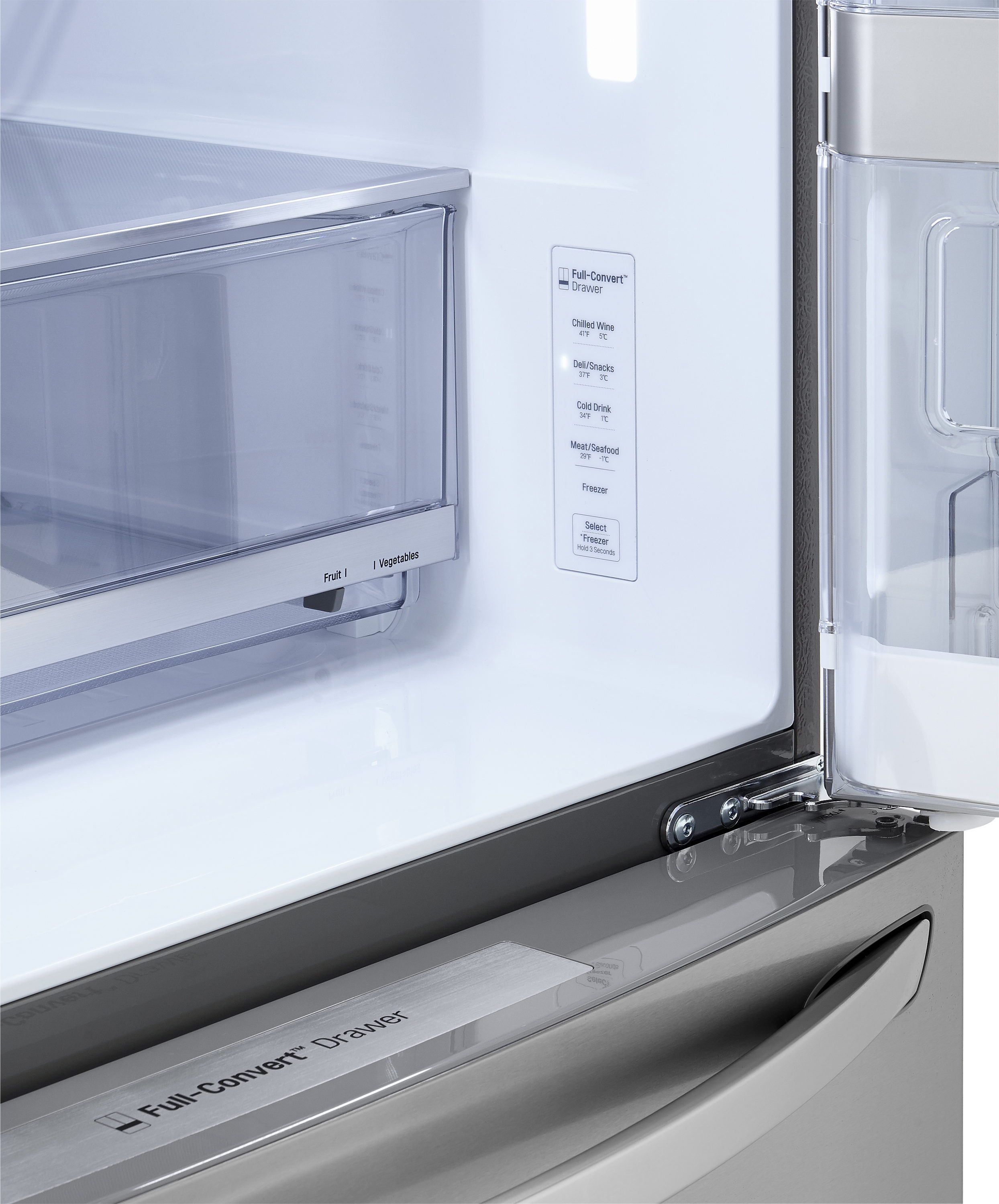 LG’s exclusive counter depth Door-in-Door refrigerators have everything you need to become the ultimate home entertainer. Dual ice makers with Craft Ice automatically create crushed, cubed and LG’s exclusive slow-melting round ice for upscale, craft drinks at home without the work. The Full-Convert drawer gives you more capacity when you need it, with the ability to fully convert from 5 chill to freeze options with one quick touch. To ensure you’re serving guests the freshest foods, innovative LG cooling technologies work together to dramatically extend the life of your produce.