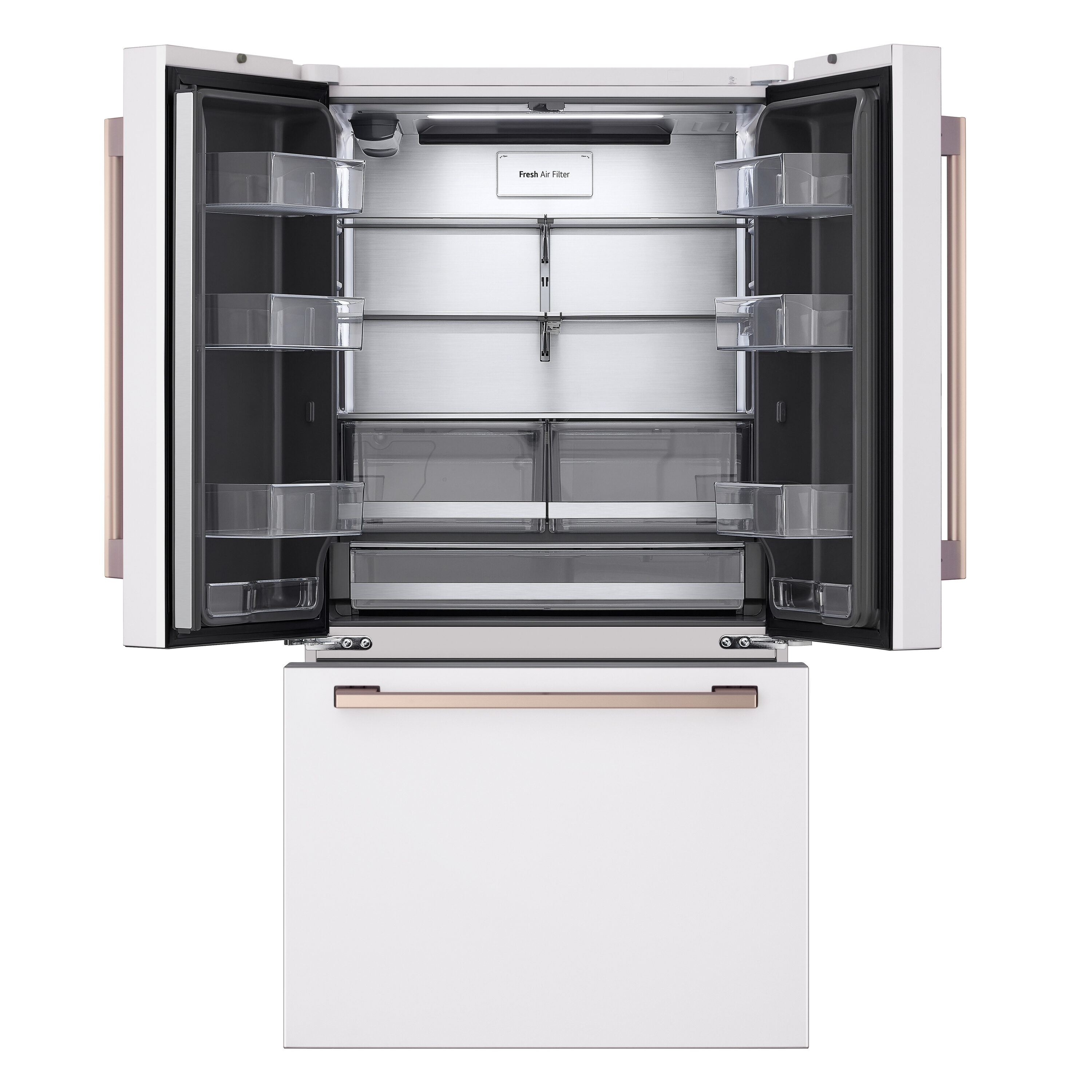 With no visible dispenser or controls, the sleek doors enhance your kitchen’s style with minimalist design.