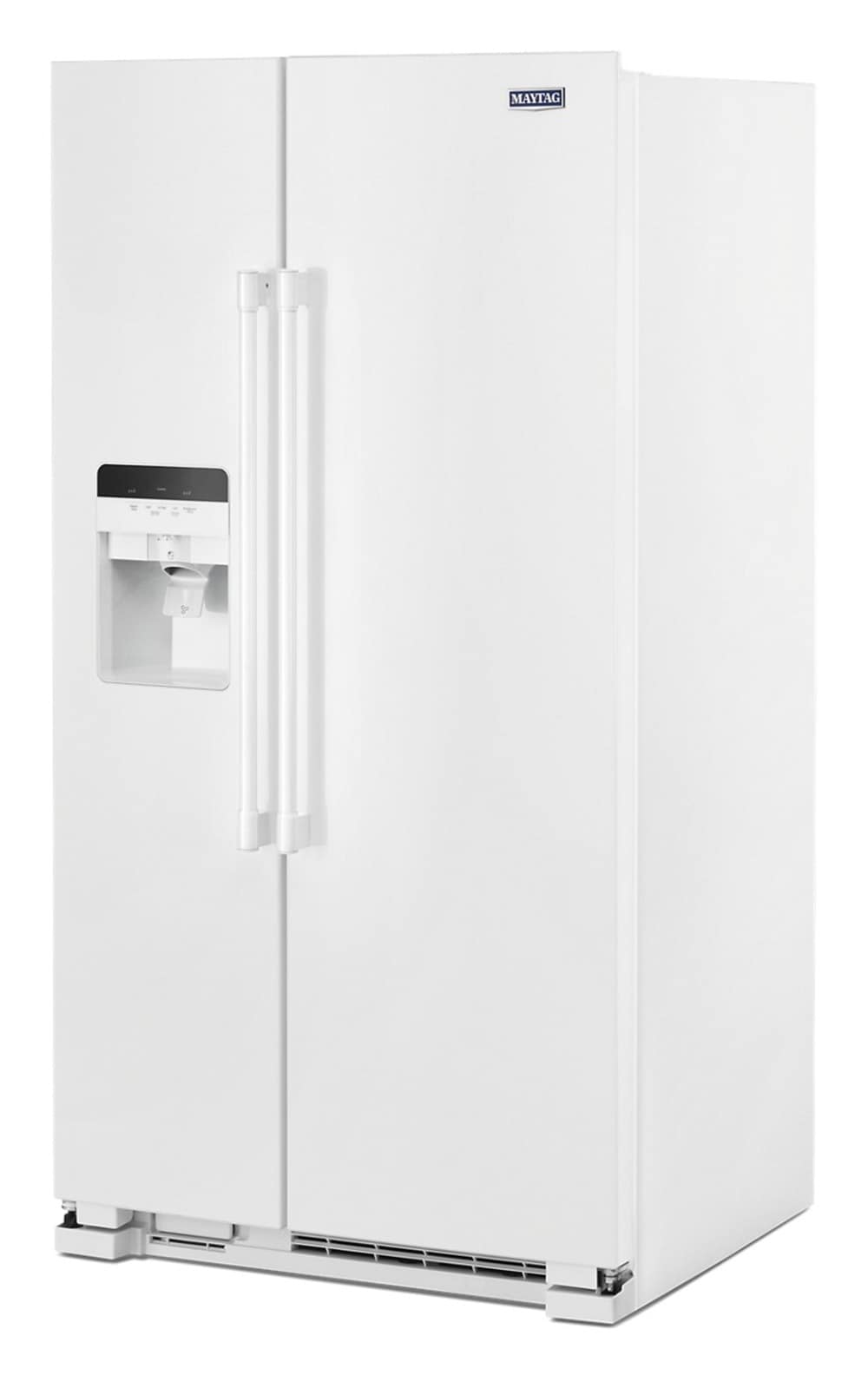 This side-by-side refrigerator is built tough and easy-to-clean. Built with plenty of storage options, including a specially designed soft freeze bin that puts you in control of the way foods freeze. Put in a pint of ice cream and it’s soft enough to scoop. Frozen pizza storage stores two frozen pizza boxes upright and out of the way, so quick meals are an easy grab. The distinct and durable Signature Maytag® metal shelf adds a bold look to the inside. With an exterior ice and water dispenser for easy access, plus a 10-year limited parts warranty on the compressor, this side-by-side fridge will keep it all cool for years and years.