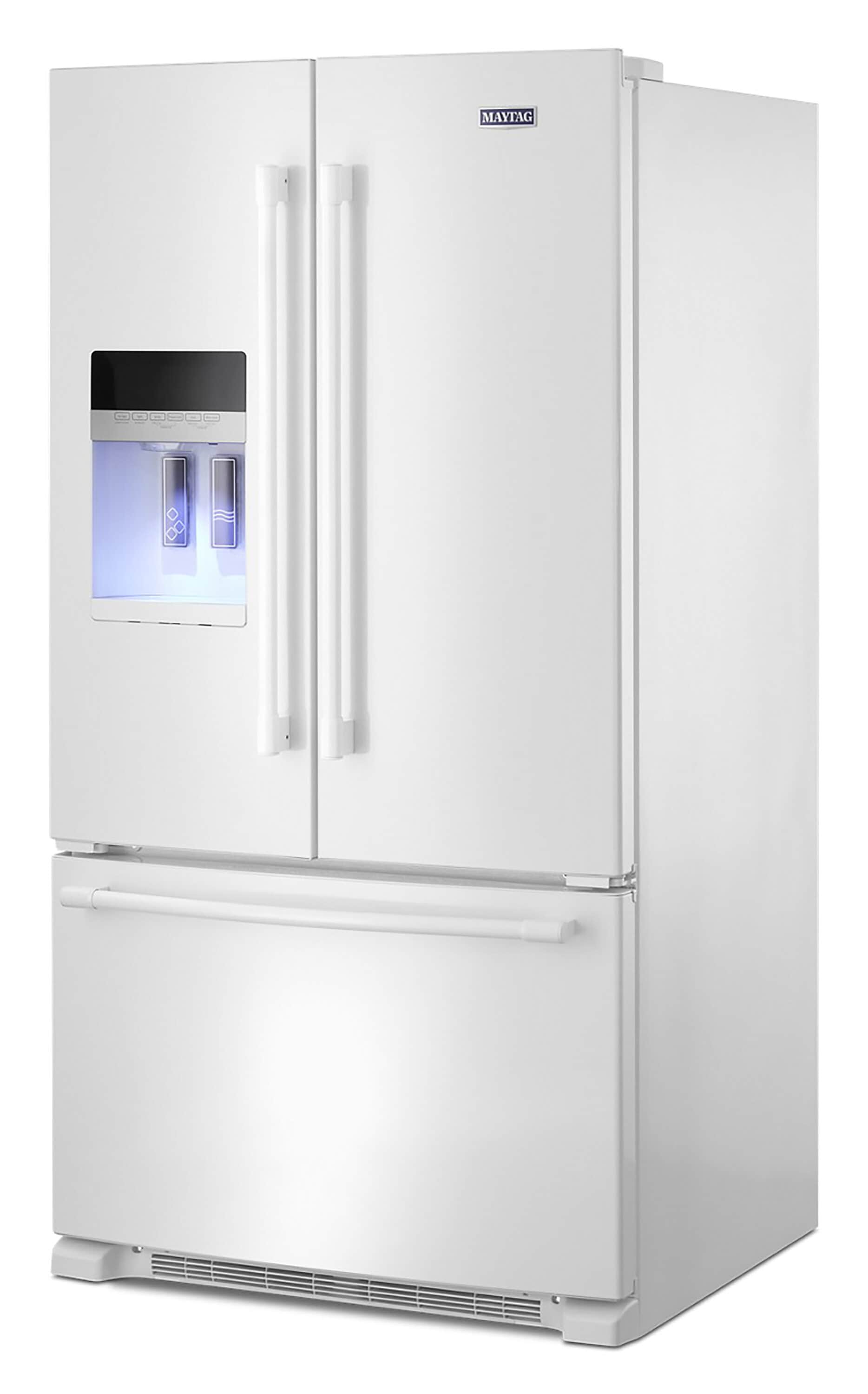 This Maytag® french door refrigerator is made with heavy-duty components and features that deliver the right kind of cold exactly where it’s needed. It’s available in Fingerprint Resistant Stainless Steel to keep this fridge looking as good on the outside as it works on the inside. With the touch of a button, the PowerCold® feature quickly chills down the refrigerator. The temperature-controlled Wide-N-Fresh™ deli drawer provides the perfect place to keep deli items so they stay fresh longer. And when it comes to durability, this french door refrigerator has stainless steel handles to give you something hardy to grab on to, while the 10-year limited parts warranty on the compressor means you can count on it hold the cold for years.