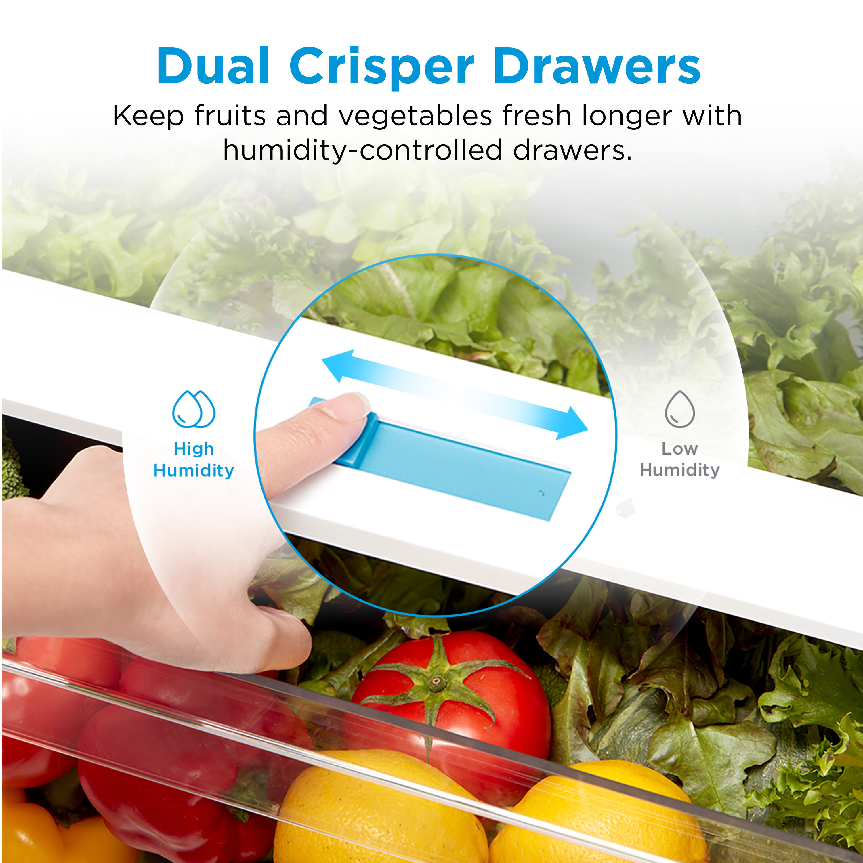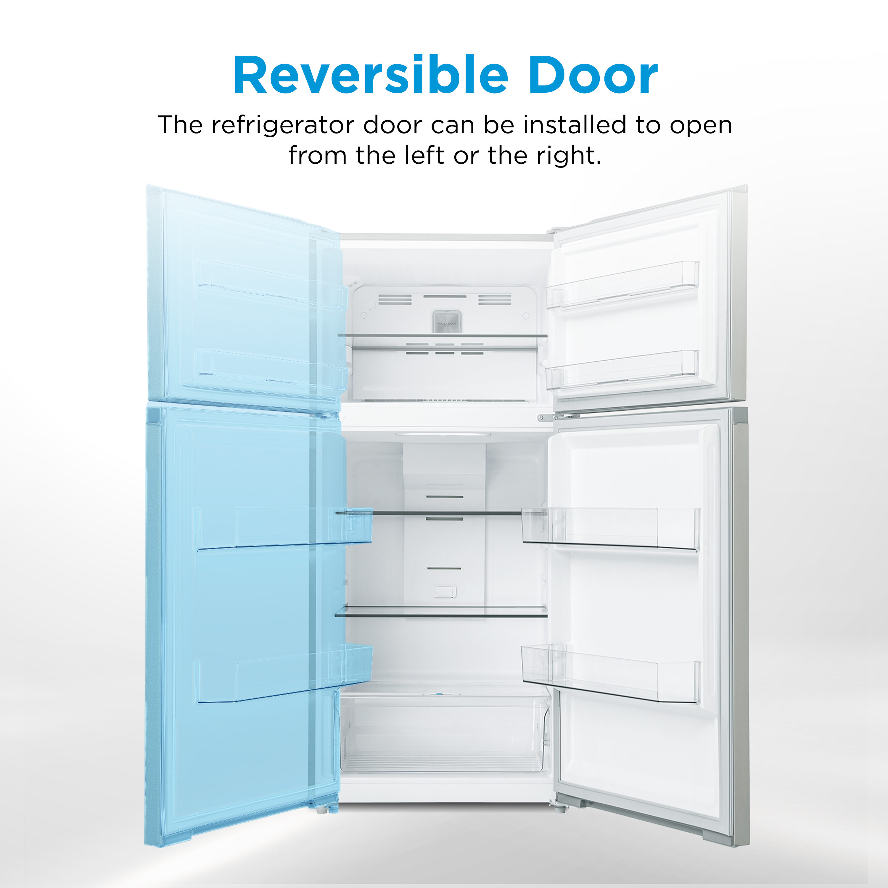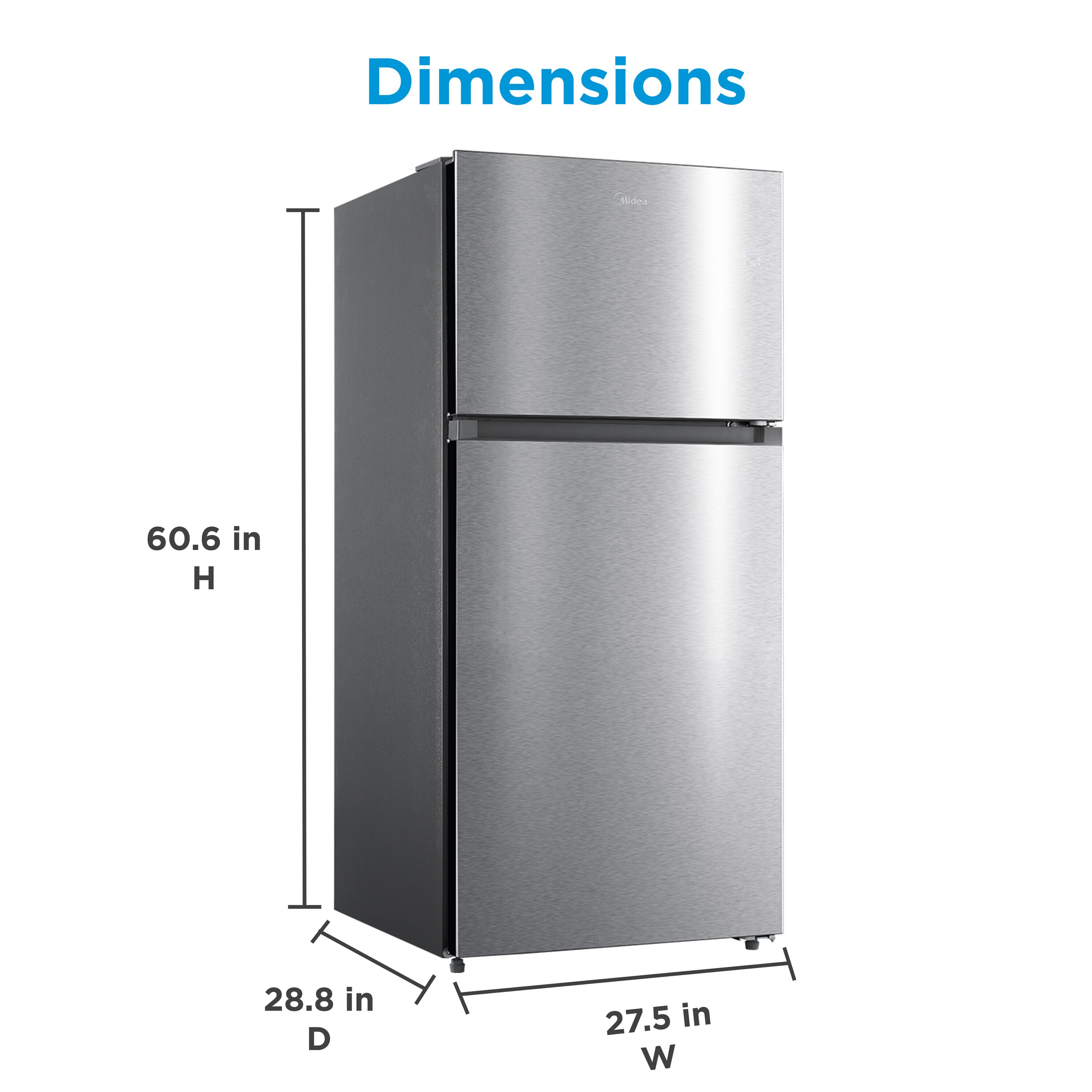 Upgrade your kitchen with the Midea 14.2-cu ft Counter-Depth Top-Freezer Refrigerator, which offers both a wide range of convenient features and energy-efficient performance. The internal LED lighting ensures that you can always find what you’re looking for, while the electronic control panel makes temperature adjustments a breeze. Humidity-controlled crisper drawers keep your produce fresh, and the reversible door allows for flexible installation. The top-freezer design puts frozen foods at eye level for easy access. Bring home this refrigerator today to optimize your food storage capabilities and keep your kitchen running smoothly.