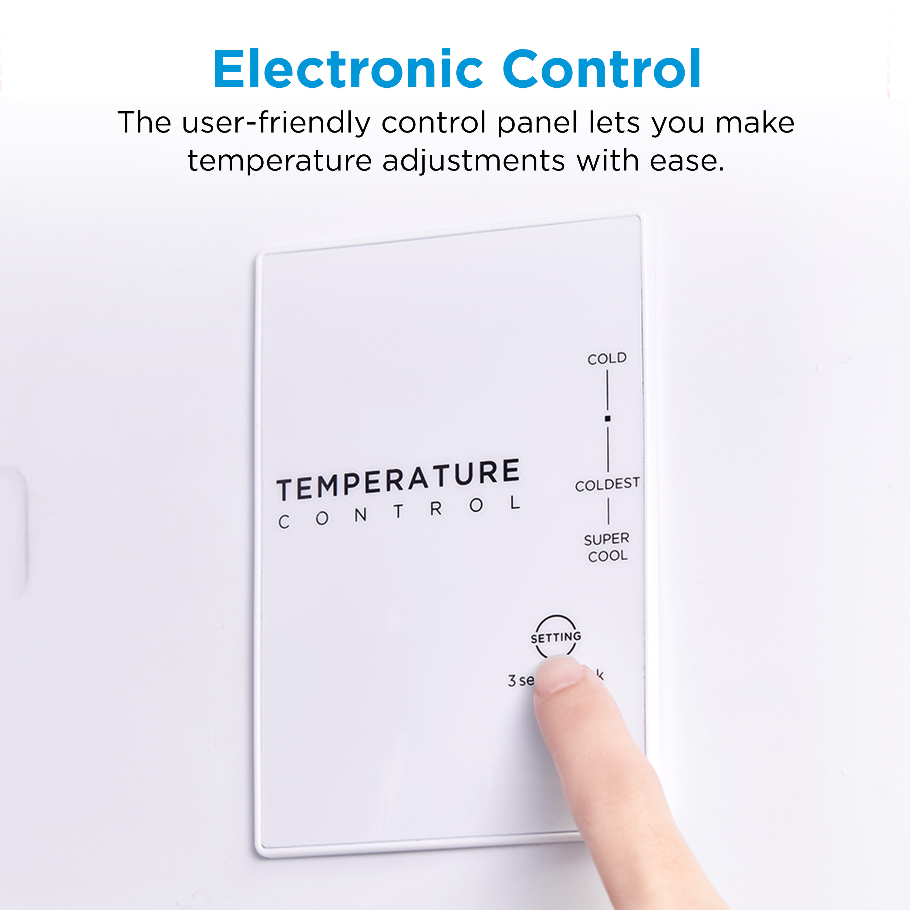 Electronic Control: The user-friendly control panel lets you make temperature adjustments with ease.