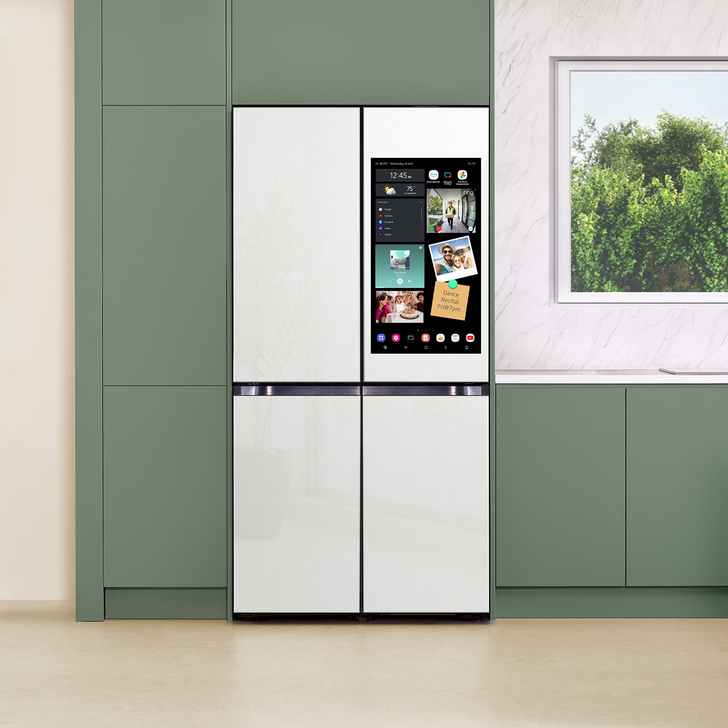 Keep your family in sync: Share pictures and videos with Google(A Wi Fi connection and Samsung account required); and leave handwritten notes; Keep track and sync family calendars all from the fridge(Google and Google Photos are trademarks of Google LLC)