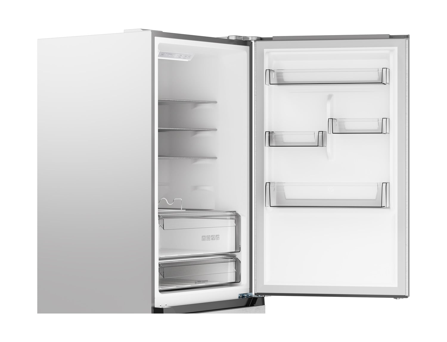 The Sharp SJB1255GS 24 in. Bottom-Freezer Counter Depth Refrigerator is a fresh and fitting addition to a well-planned kitchen where space is at a premium. Standing tall and slim, the sleek and contemporary stainless-steel SJB1255GS is fingerprint and smudge-resistant. The reversible door option is a thoughtful finishing touch to accommodate compact spaces. An innovative space-saving refrigerator with well-designed storage solutions, the SJB1255GS includes two shelves, a spacious 4.2 cu. ft. freezer with three drawers, and a removable wine rack for quick and easy organization. The settings for the Sharp SJB1255GS are at your fingertips with a bright, easy-to-read LED display and Electronic Temperature Control for each compartment. The Multi Air Flow distribution system helps to adjust the internal temperatures throughout the refrigerator quickly, while Freeze Boost brings an extra chill to the freezer when you need it. The dual-purpose Fresh Converter Drawer can be set to Chiller for fresh foods or Crisper to keep your fruits and vegetables crisp and delicious. Auto Defrost helps remove frost buildup in the freezer, so you always have the most storage space available. Whether you are looking to downsize your main refrigerator, add a second refrigerator to a family room, or choose a practical and energy-efficient solution for a second home Eco Mode and Vacation Mode gives you the flexibility you need to best fit your lifestyle. Now that is simply Better Living.