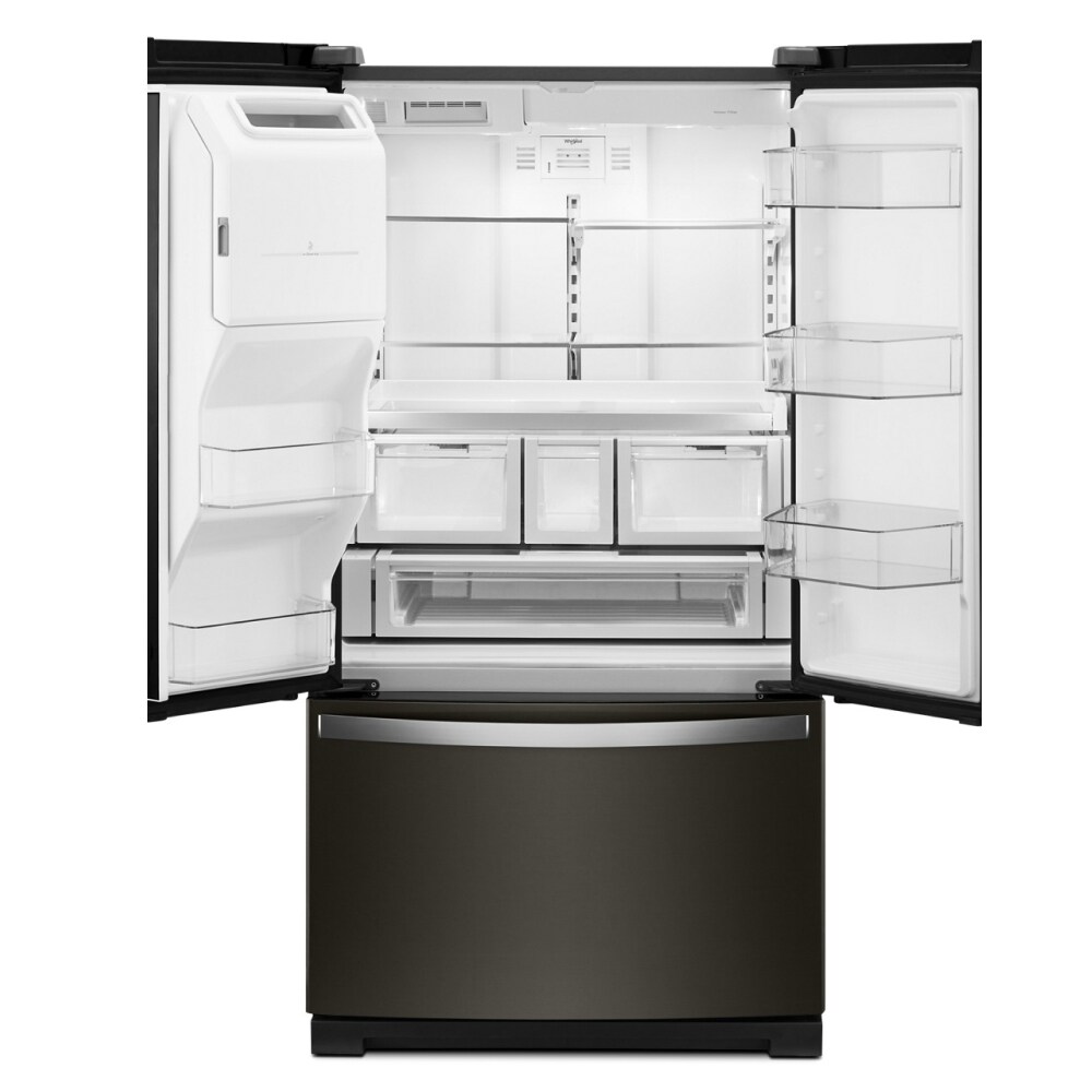 More room for your most loved foods, beverages, and double the ice-making capacity. This family-friendly 26.8 cu ft French Door refrigerator from Whirlpool® has dual ice makers and is thoughtfully designed with purposeful storage features to make things easy to fit and find. ENERGY STAR certified.